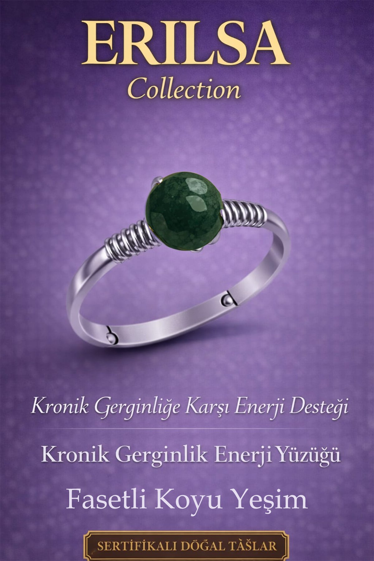 Sertifikalı Kronik Gerginlik Enerji Yüzüğü – Fasetli Koyu Yeşim Ayarlamalı Oğlak Akrep Başak Burcu