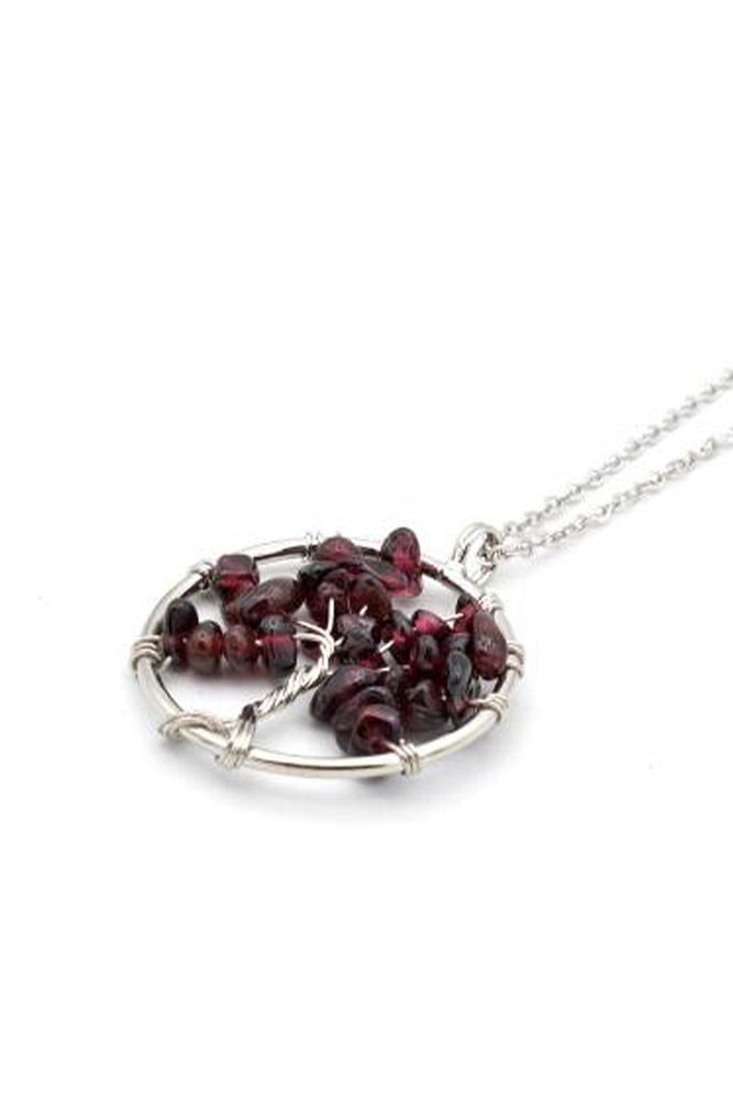 Sertifikalı Lal Garnet Granat Taşı Hayat Ağacı Kolye (AAA+)