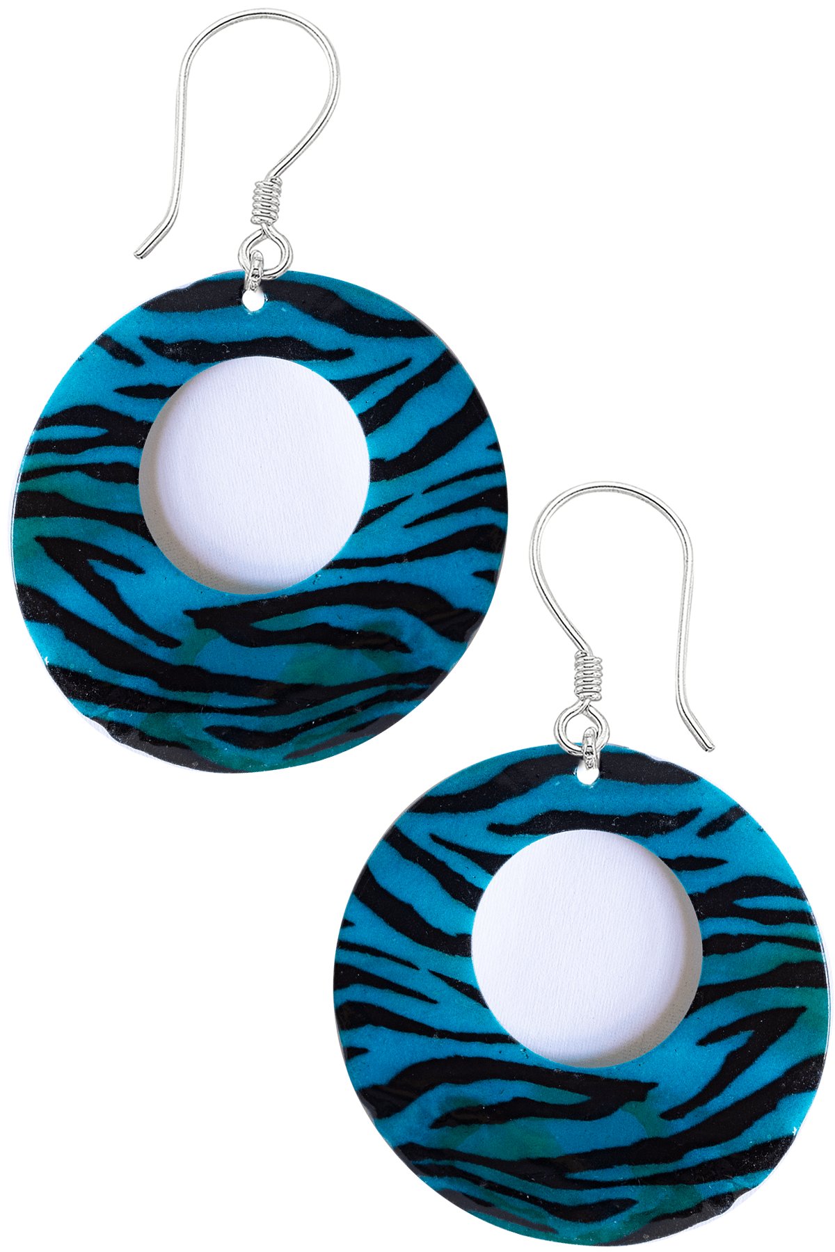 Sertifikalı Leopar Desenli Mavi Renkli Sedef Taşı Küpe