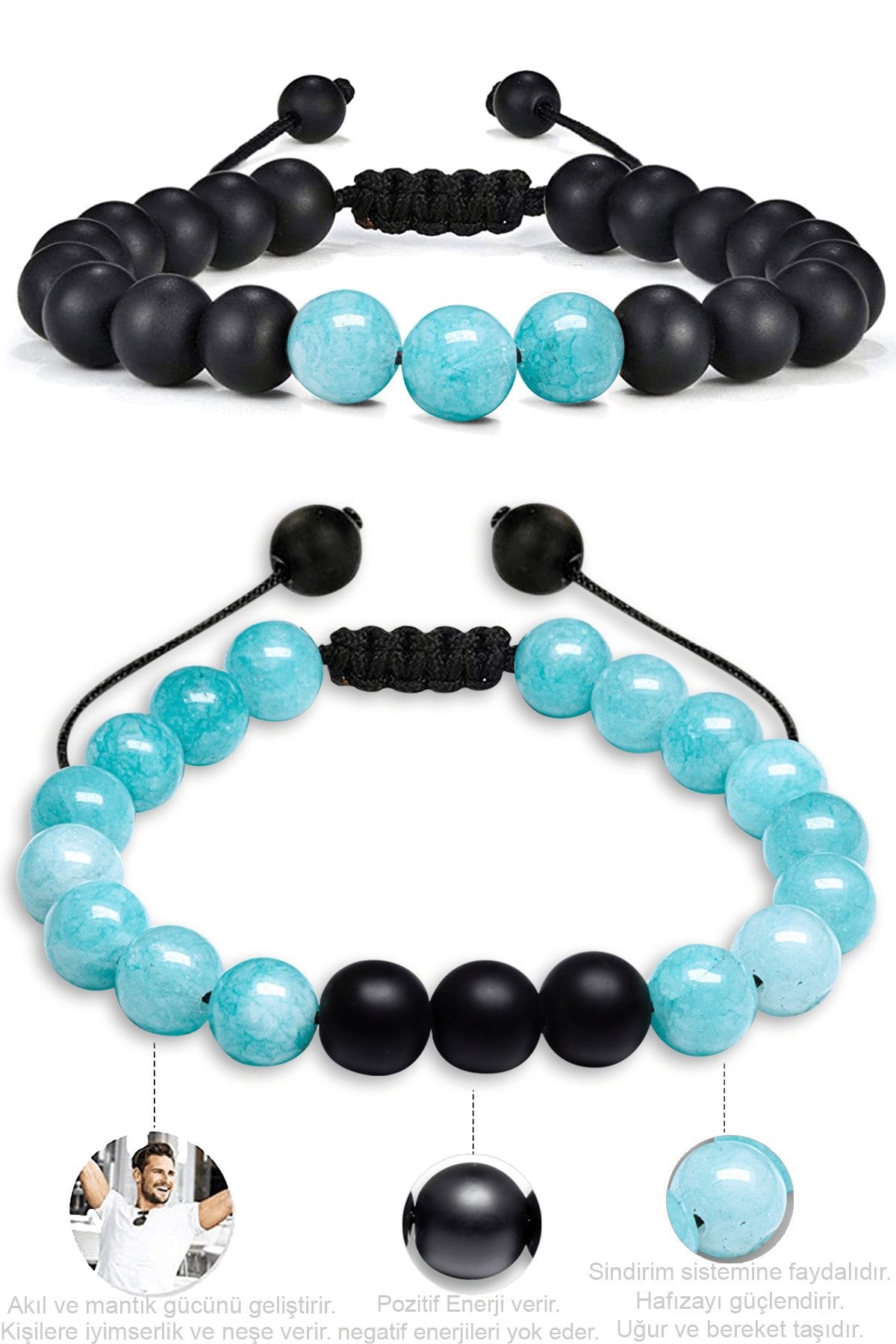 Sertifikalı Makrome Akuamarin Taşı Doğal Taş Bileklik Seti