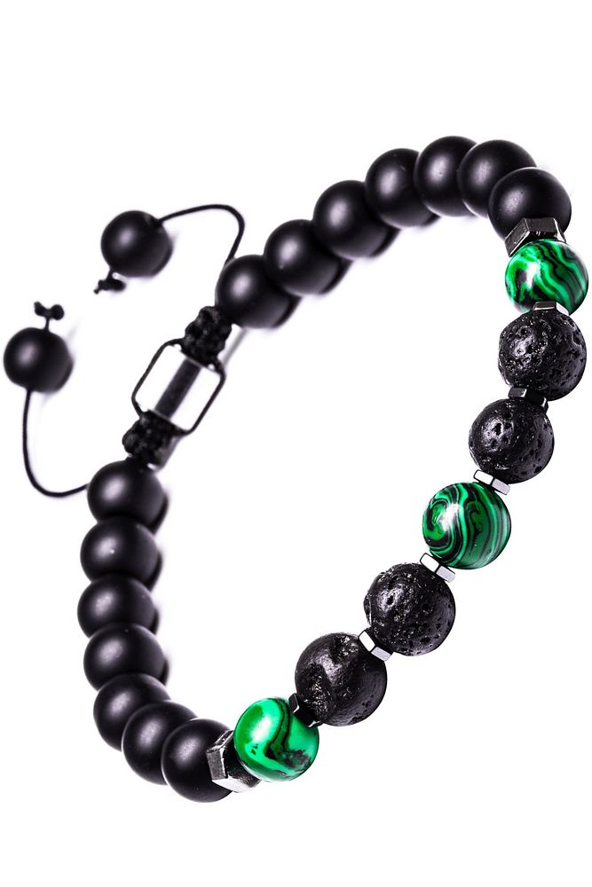 Sertifikalı Makrome Doğal Oniks Malahit Lav Taşı Bileklik