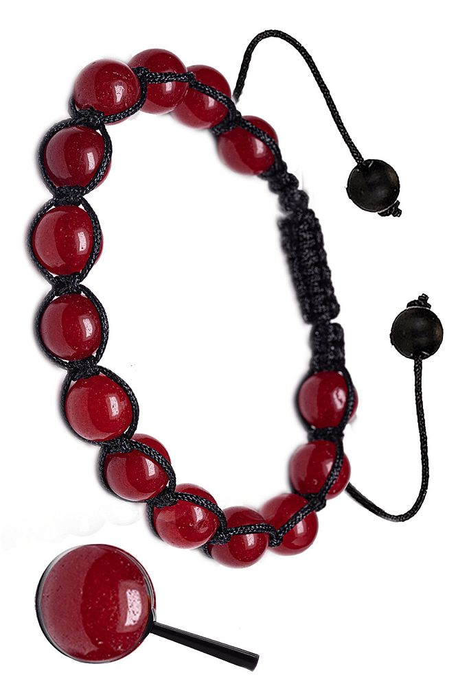 Sertifikalı Makrome Kırmızı Akik Taşı Bileklik - 1.kalite