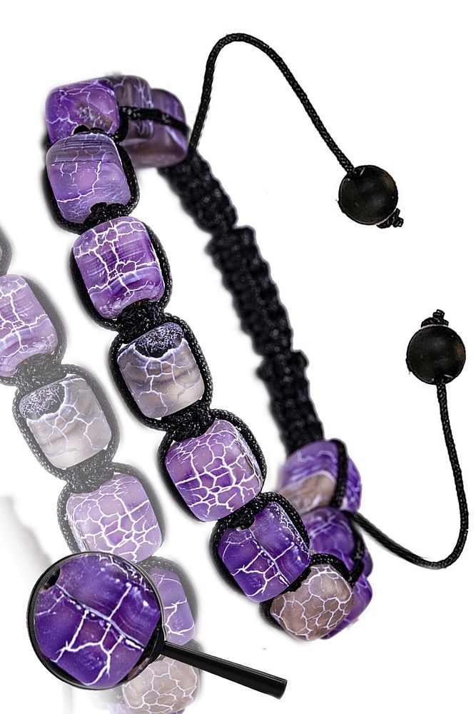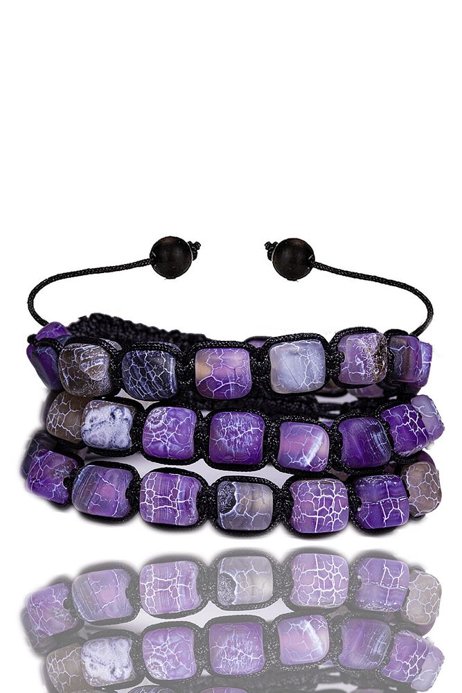 Sertifikalı Makrome Küp Kesim Damarlı Mor Akik Taşı Bileklik