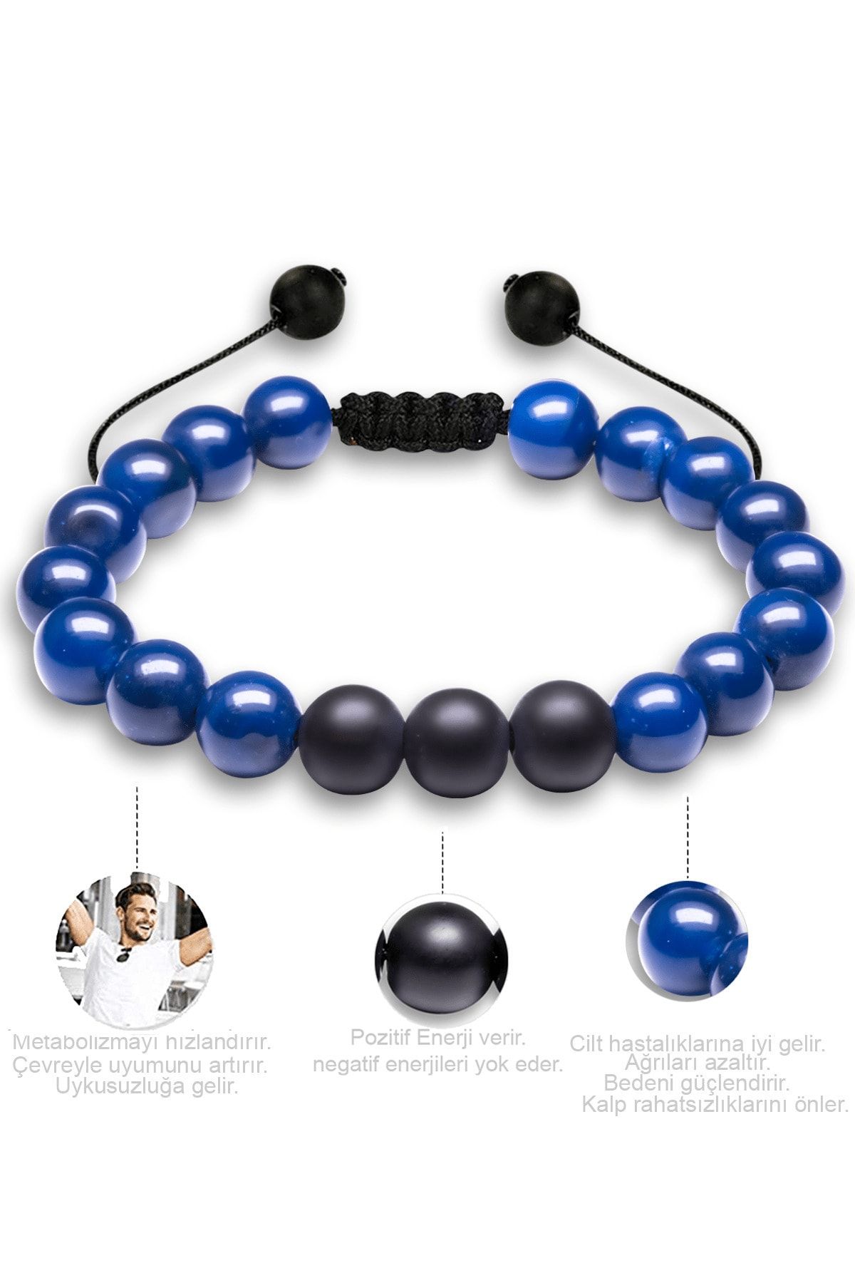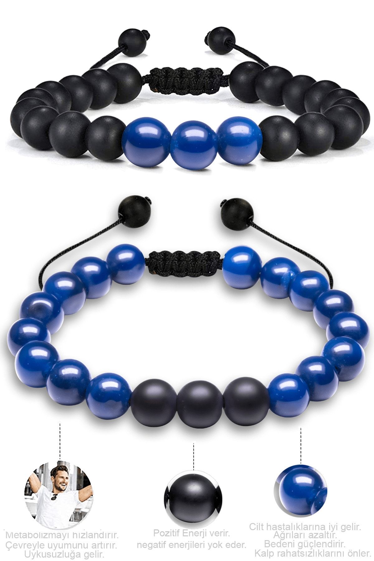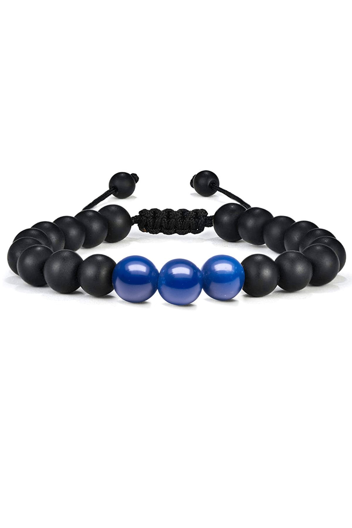 Sertifikalı Makrome Mavi Akik Taşı Doğal Taş Bileklik Seti