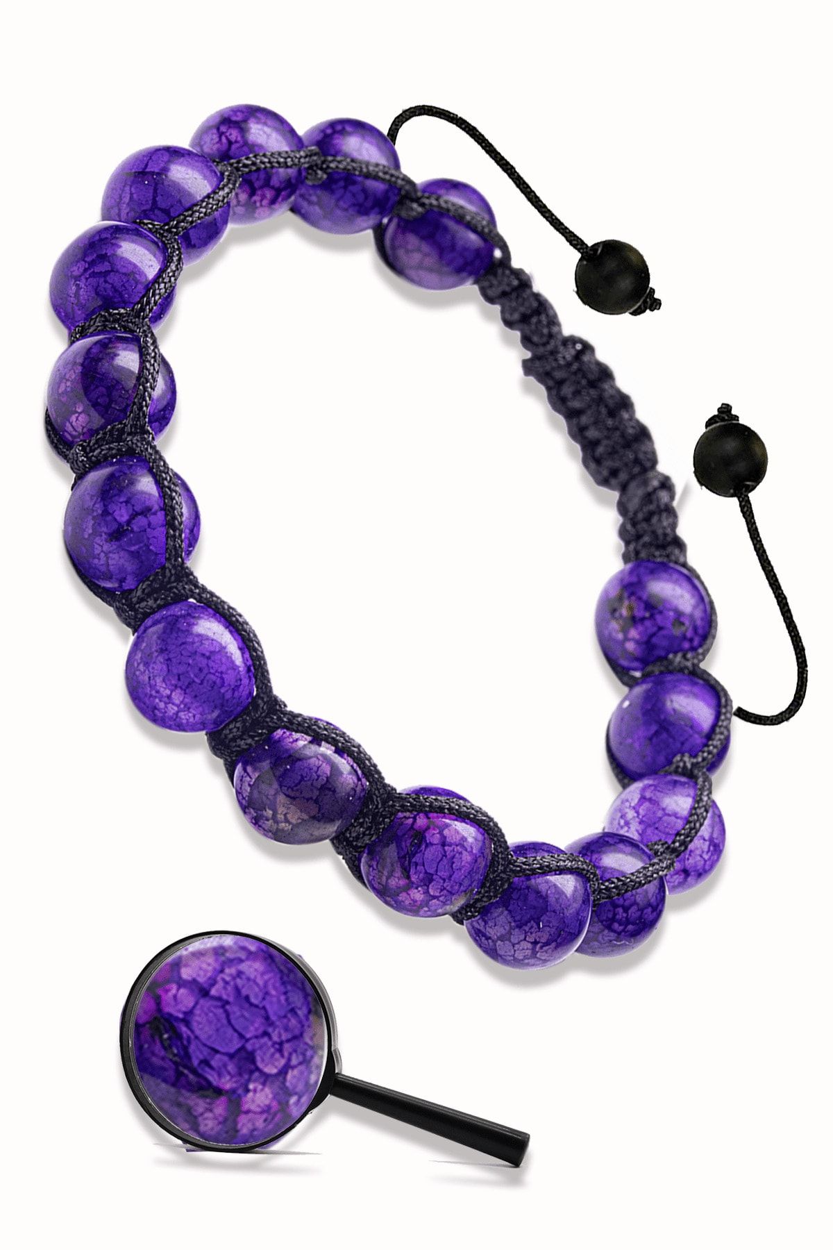 Sertifikalı Makrome Mor Akik Taşlı Doğal Taş Bileklik Mor Renk