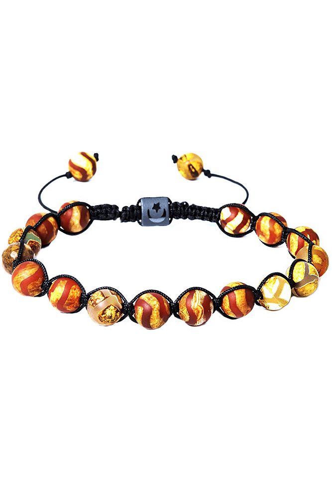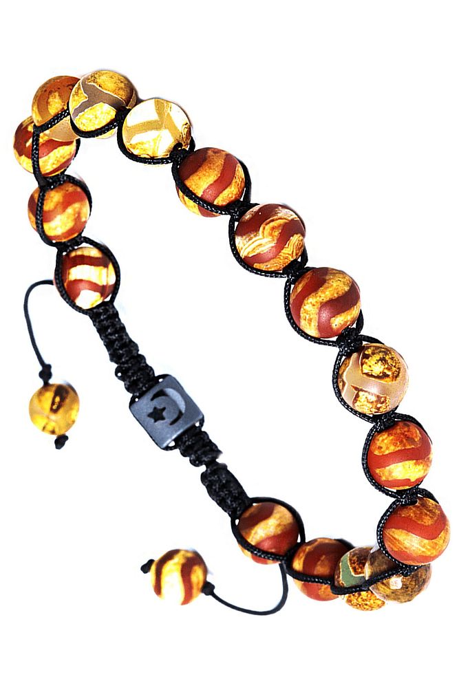 Sertifikalı Makrome Sarı Çizgili Kırmızı Tibet Doğal Akik Taşı Bileklik