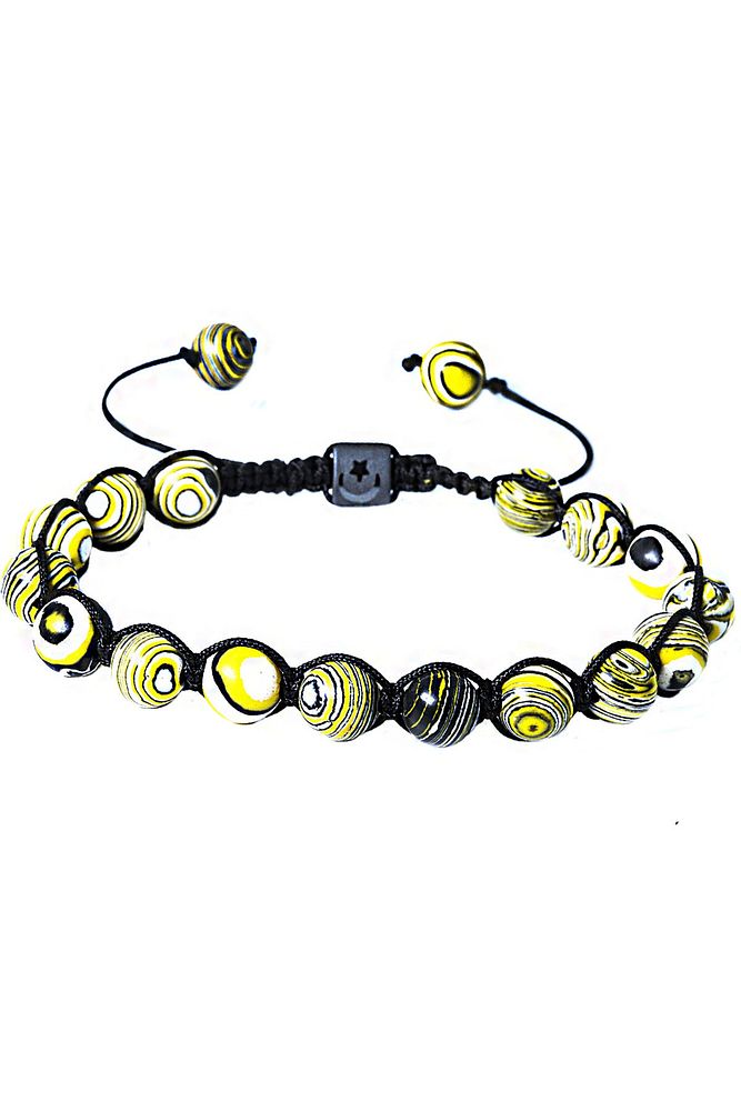 Sertifikalı Makrome Sarı Doğal Malahit Malakit Taşı Bileklik
