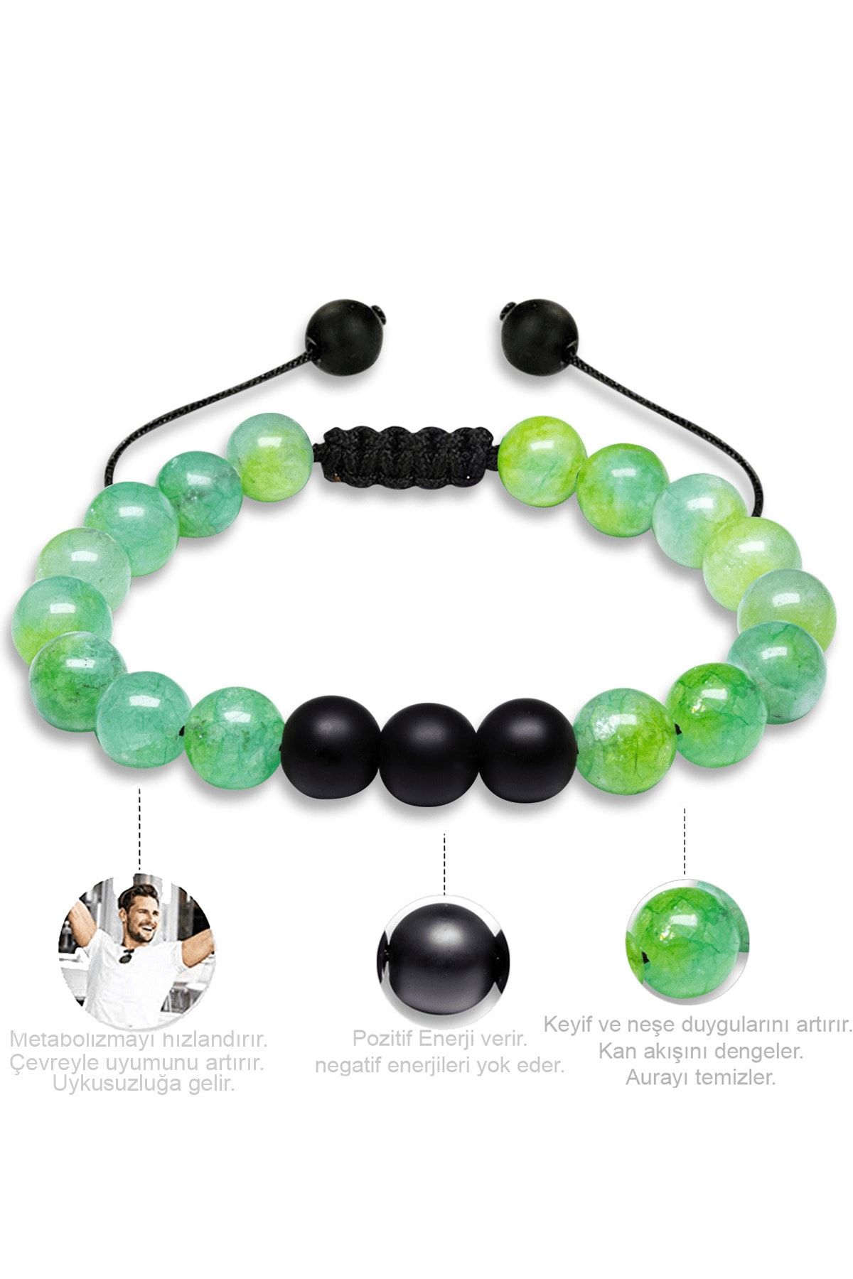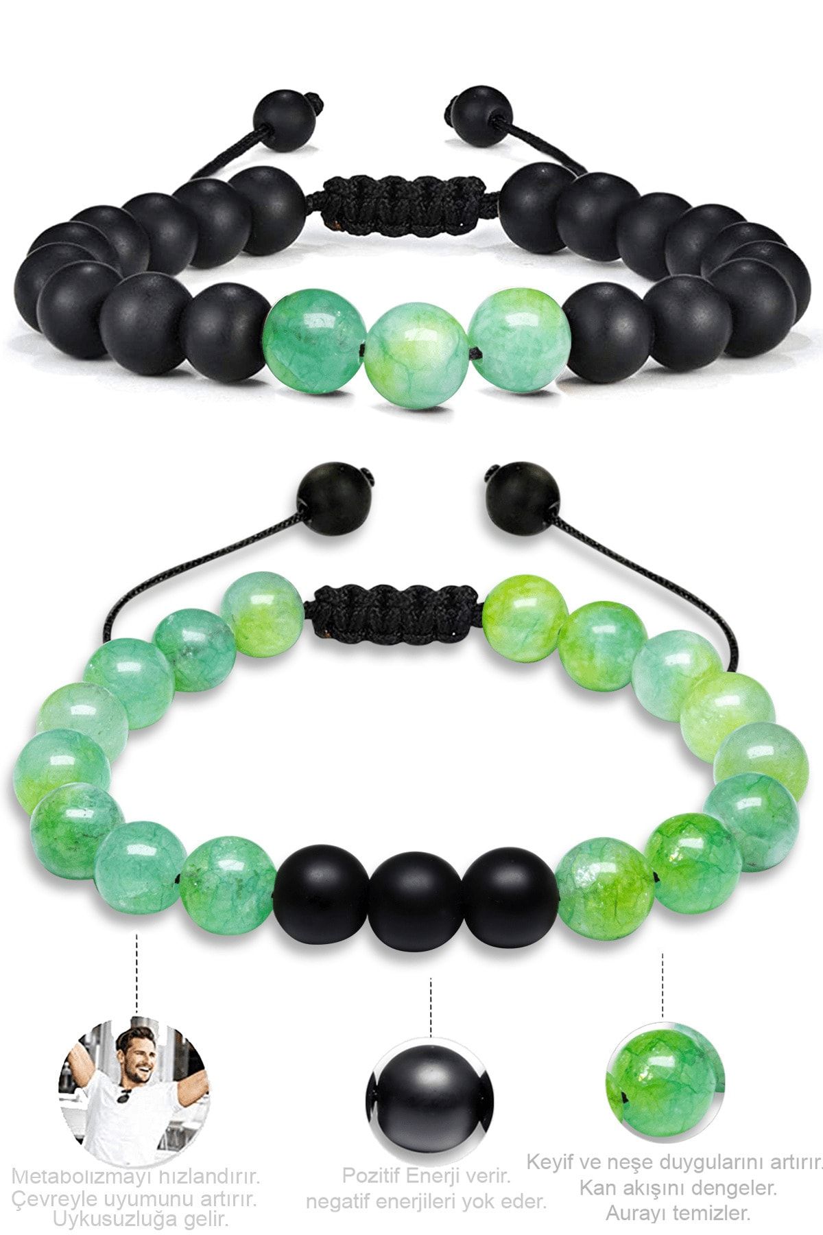 Sertifikalı Makrome Su Yeşili Akik Taşı Doğal Taş Bileklik Seti