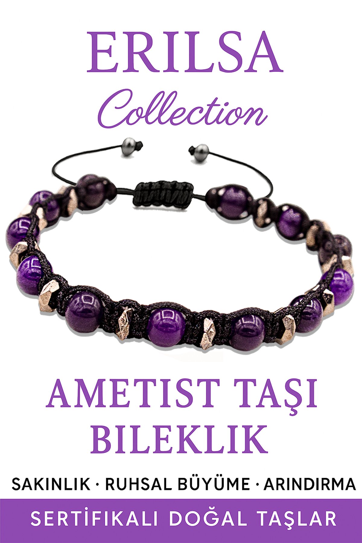 Sertifikalı Makrome Terahertz ve Ametist Bileklik – Ruhsal Sükunet ve Zihinsel Netlik