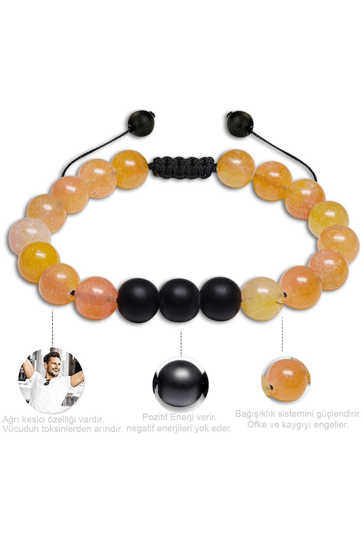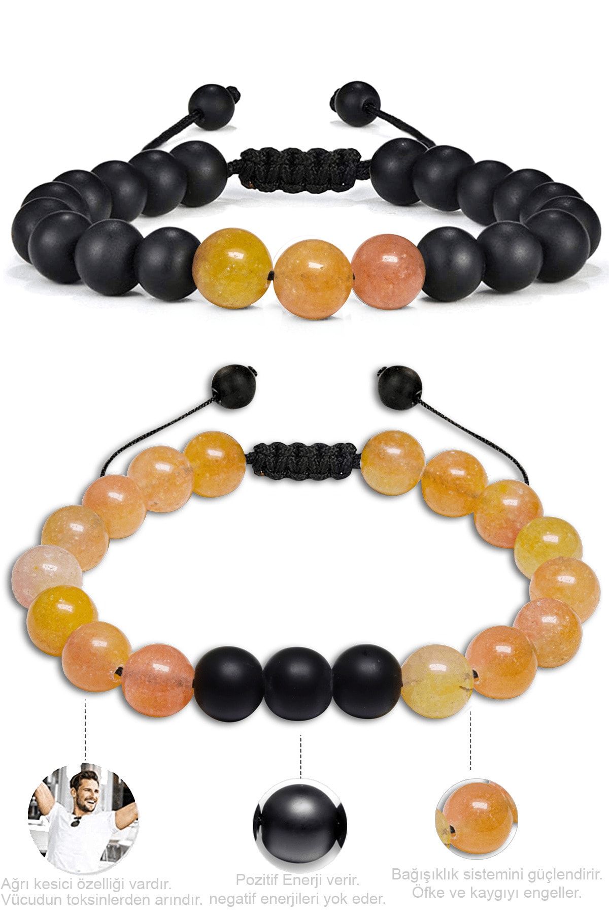 Sertifikalı Makrome Turuncu Akik Taşı Doğal Taş Bileklik Seti