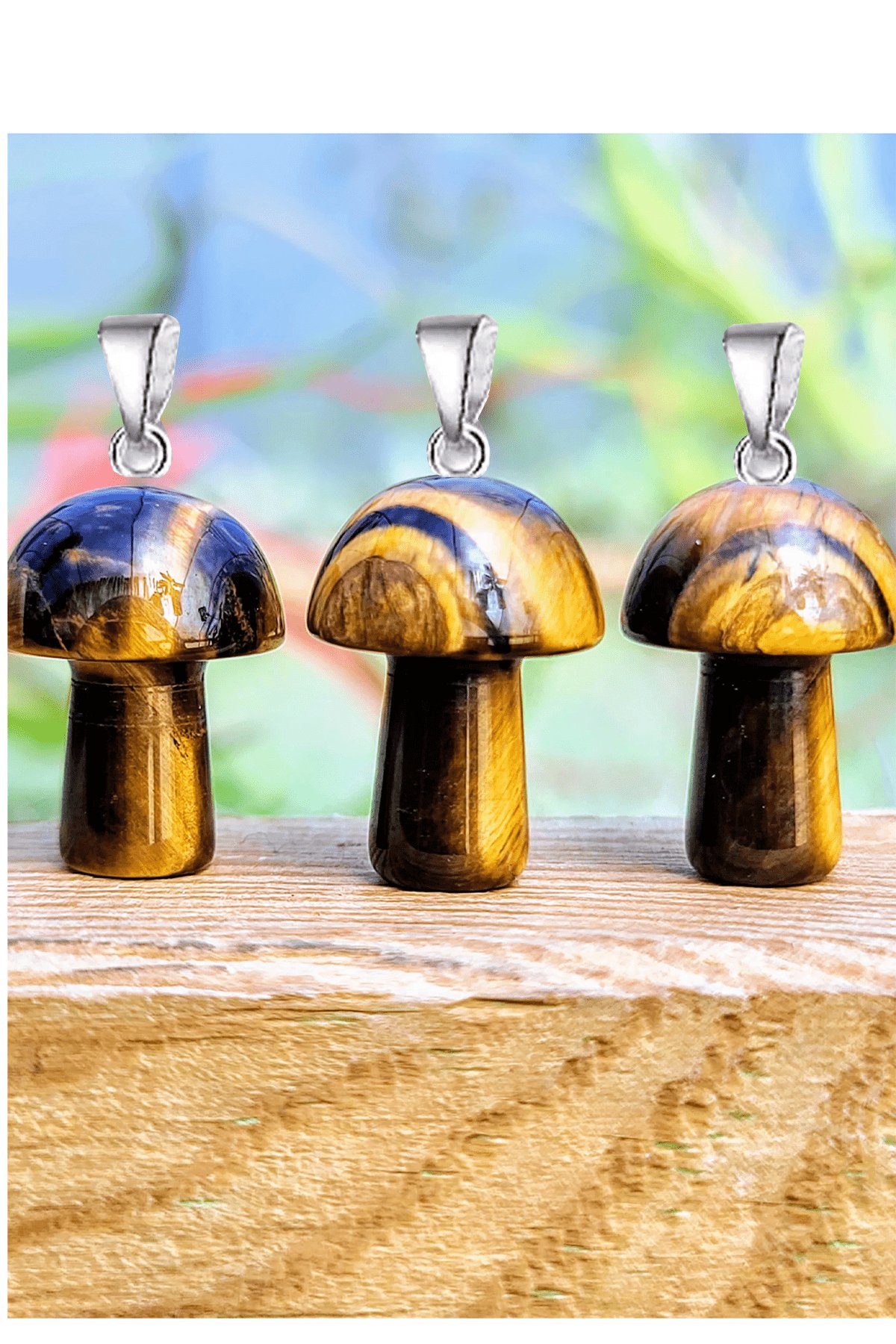 Sertifikalı Mantar Model Kaplan Gözü Taşı Kolye - Gümüş Aparatlı