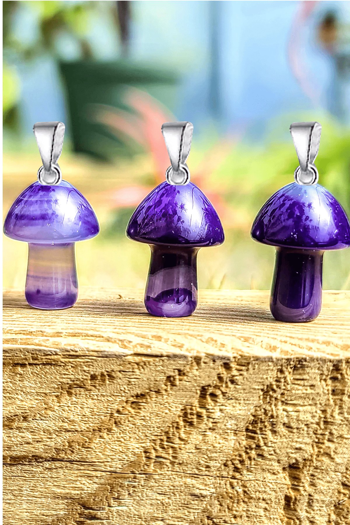 Sertifikalı Mantar Model Mor Akik Taşı Kolye - Gümüş Aparatlı