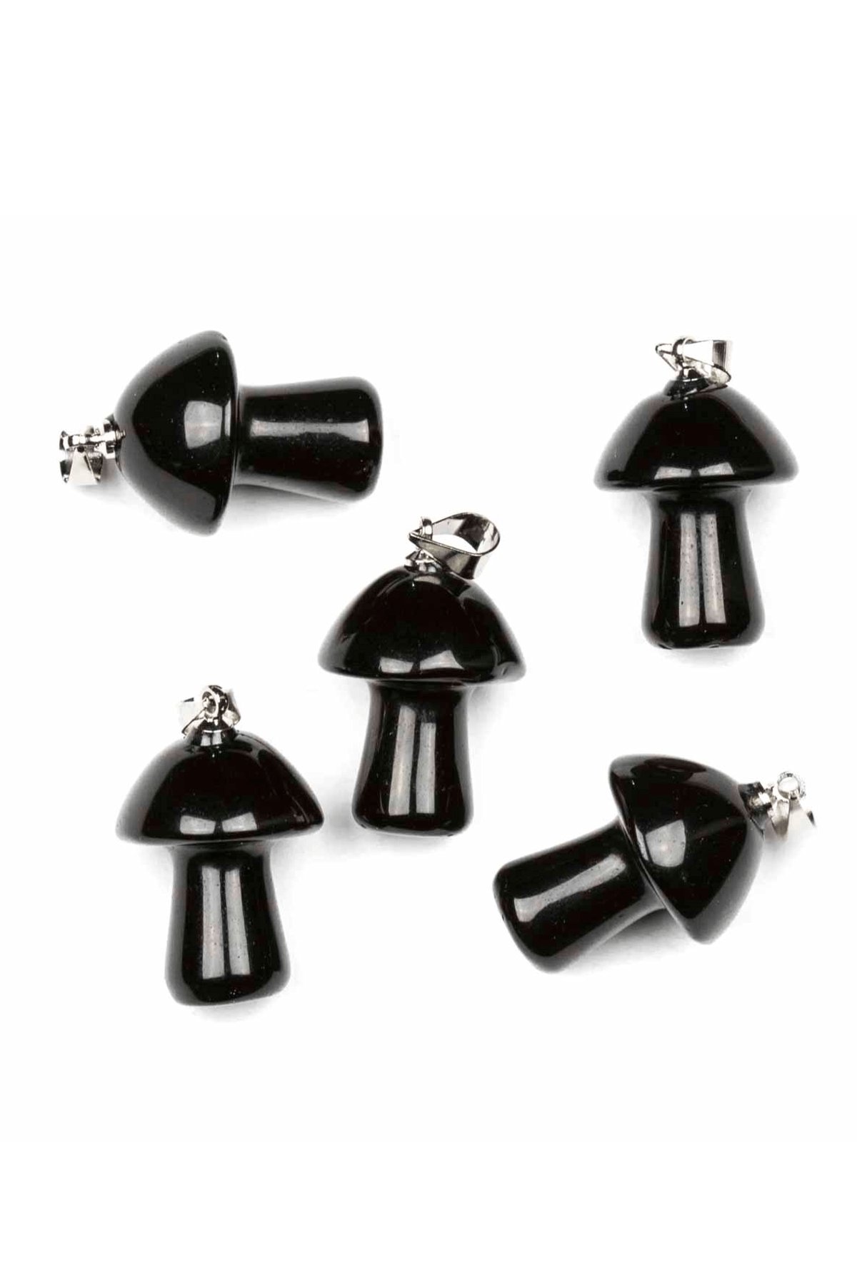 Sertifikalı Mantar Model Obsidyen Taşı Kolye - Gümüş Aparatlı