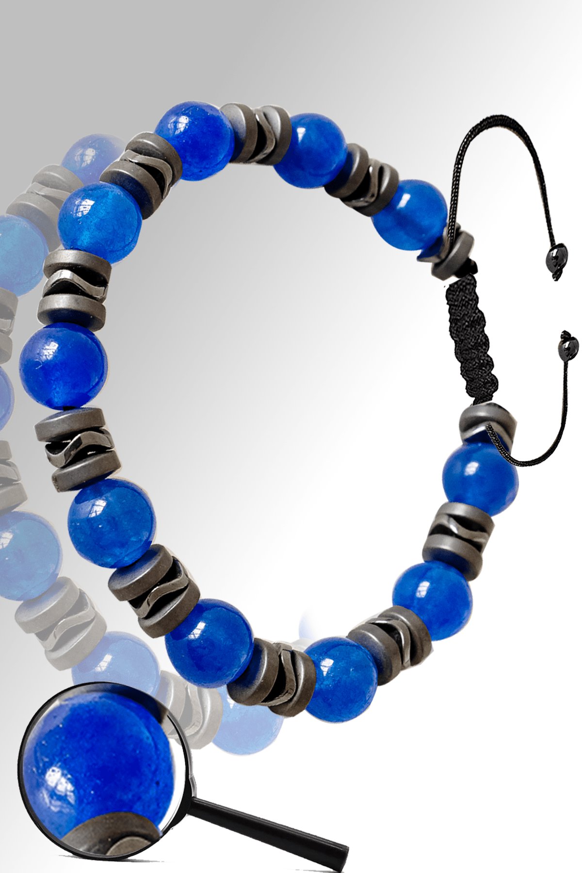 Sertifikalı Mat Hematit - Mavi Akik Taşı Bileklik - Ayarlamalı