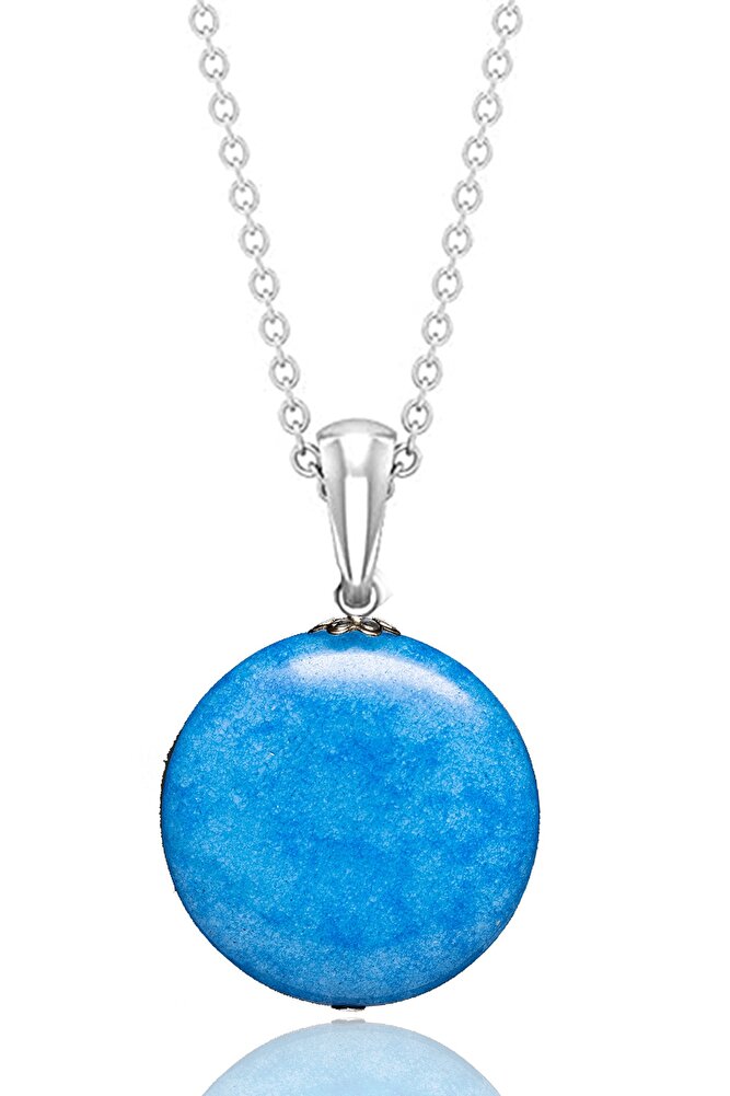 Sertifikalı Mavi Akik Taşı Kolye - 1.kalite