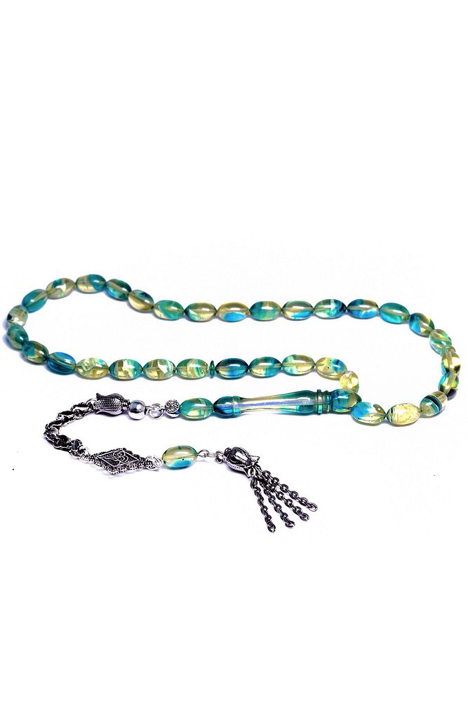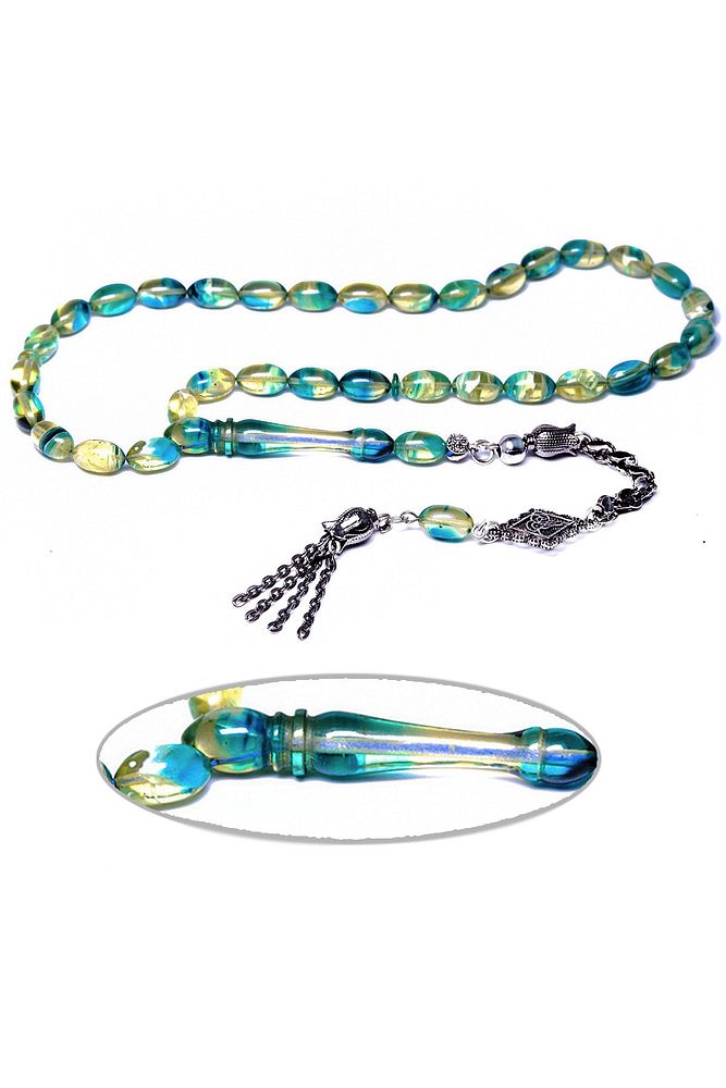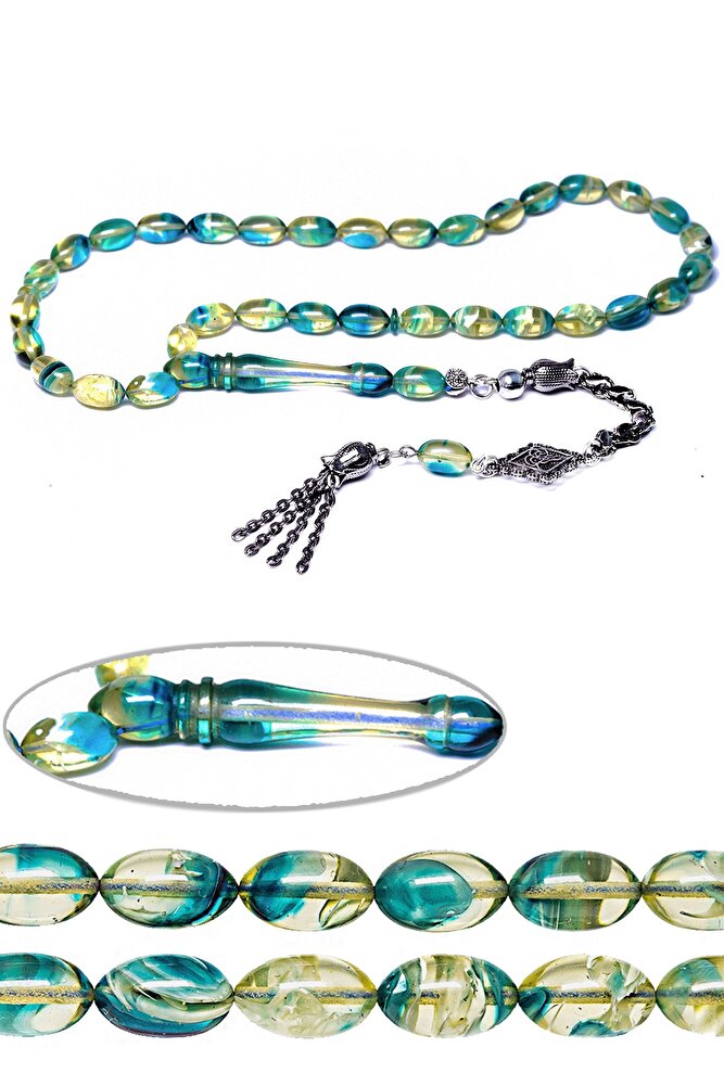 (Baş Ağrısı Sinir ve Stres); ; Tesbih Atölyesi, Sıkma kehribar tesbih, tasarımları özel olarak usta ellerde tasarlanır. Tasarımlarımız el yapımı olup sınırlı adette üretilmektedir. Tasarımlarda kullanılan püsküller düşük ayar gümüşten imal edilir. Tasarımlarda kullanılan kehribar taneleri hareli özel kalıplardan yapılır. Yapay reçine ile üretilmektedir. Ürünlerimiz renk almakta ve koku vermektedirler. ; ; Bu tasarımda; Mavi beyaz hareli özel muhteşem kalitede 1.kalite sıkma kehribar reçine kullanılmıştır. Her kehribar tanesi birbirinin aynısı olmadığı için küçükte olsa farklılıklar gösterebilir.; ; Üretildiği Malzeme; Sıkma Kehribar; Ana Renk; Mavi Beyaz Renk; Ağırlık; 20-30 gr; Tane Şekli; 7x11 mm; Tane Ölçüsü; Beyzi Kesim; Toplam Uzunluk; 20-30 cm; İmame ve Püskül Maddesi; Düşük Ayar Gümüş;