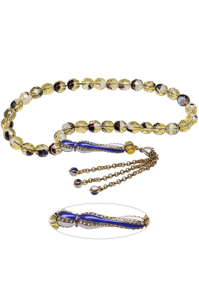 Ürün ya da Doğal Taş Açıklaması (Para - Sağlık - Pozitif Enerji Taşı) Kuvars tesbih modelleri, ''Tesbih Atölyesi'' Atölyelerinde ustalarımız tarafından kuru torna işciliği ile elde özen ile tane tane işlenmektedir. Ürünlerimiz el işciliği olduğu için sınırlı sayıda üretilmektedir. Tasarımlarımızda kullandığımız taşlar Dünya'nın en kaliteli doğal taşlarını kullanmaktayız. Tasarımlarımızda kullandığımız doğal taşların hiç biri birbirinin aynısı olmadığı için küçükte olsa farklılık gösterebilir. Doğal taşlar vücudunuza temas ettiği anda negatif enerjilerinizi alır ve pozitif enerjiler verir. Bu tasarımda; Sarı siyah renkli fasetli kuvars taşı ve Beyaz mavi mineli telkari altın kaplama imame ve püskül seti kullanılmıştır. Çift kaplama atıldığı için renk atmaz ve kararmaz bir yapıya sahiptir. Yedek ip ile gönderim sağlanır. Üretildiği Taş; Kuvars; Ana Renk; Doğal Renk; Ağırlık; 30-40 gr; Tane Şekli; 8x8 mm; Tane Ölçüsü; Küre Kesim; Toplam Uzunluk; 30-40 cm; İmame ve Püskül Maddesi; Düşük Ayar Gümüş;