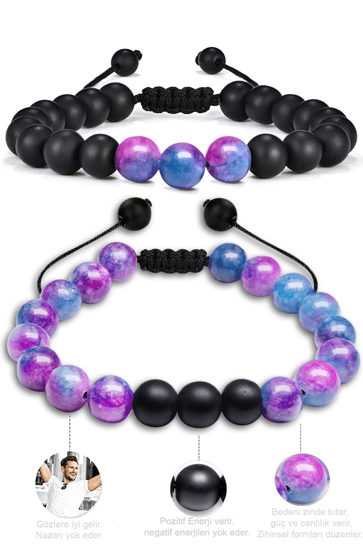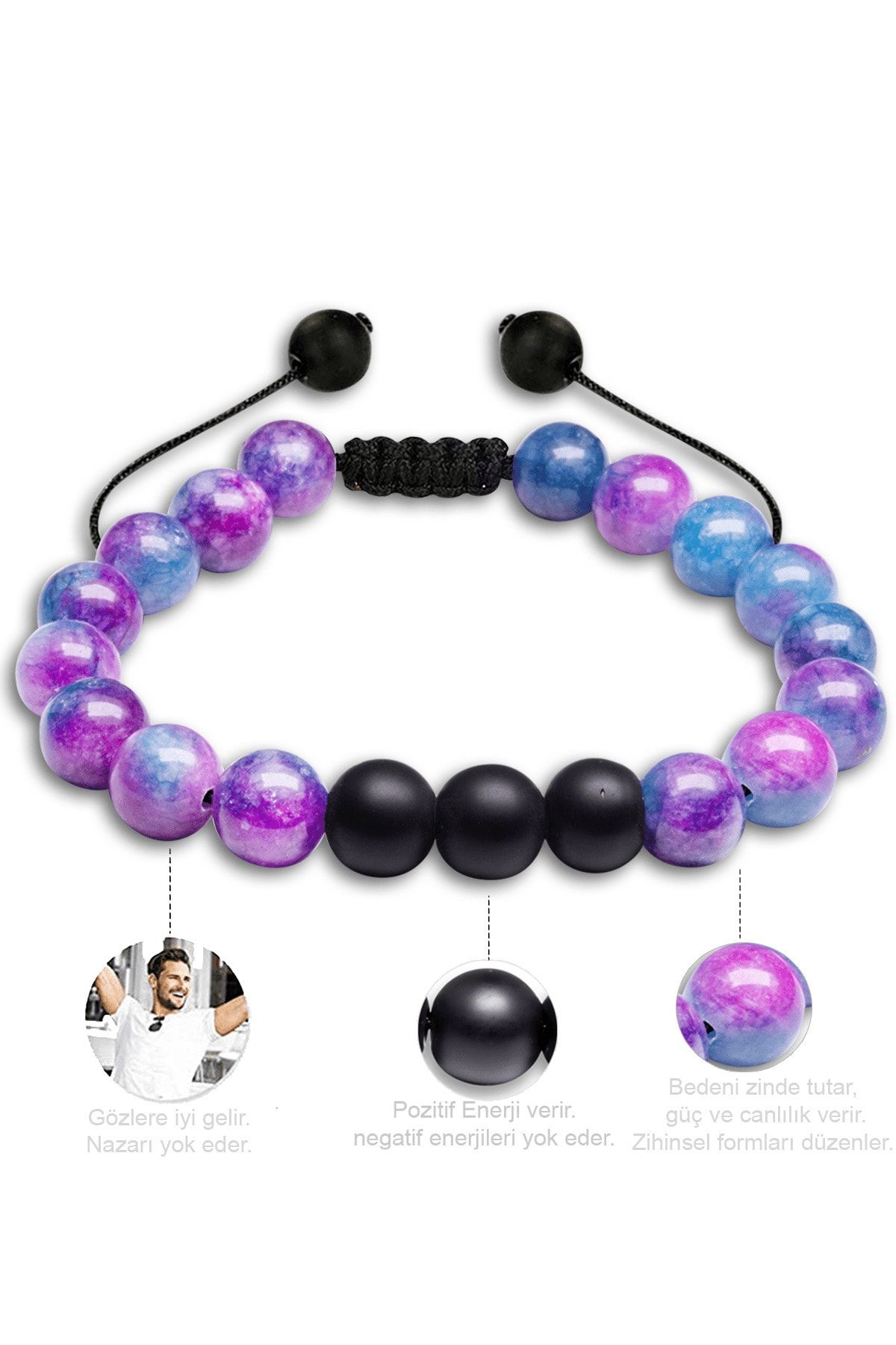 Sertifikalı Mavi Mor Renk Kuvars Taşı Doğal Taş Bileklik Seti