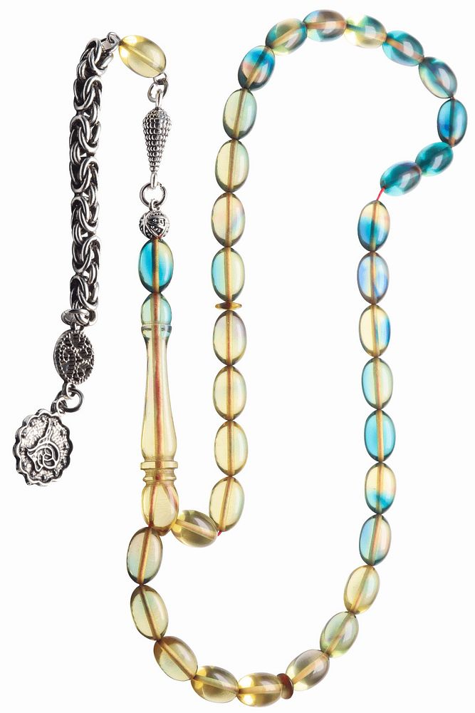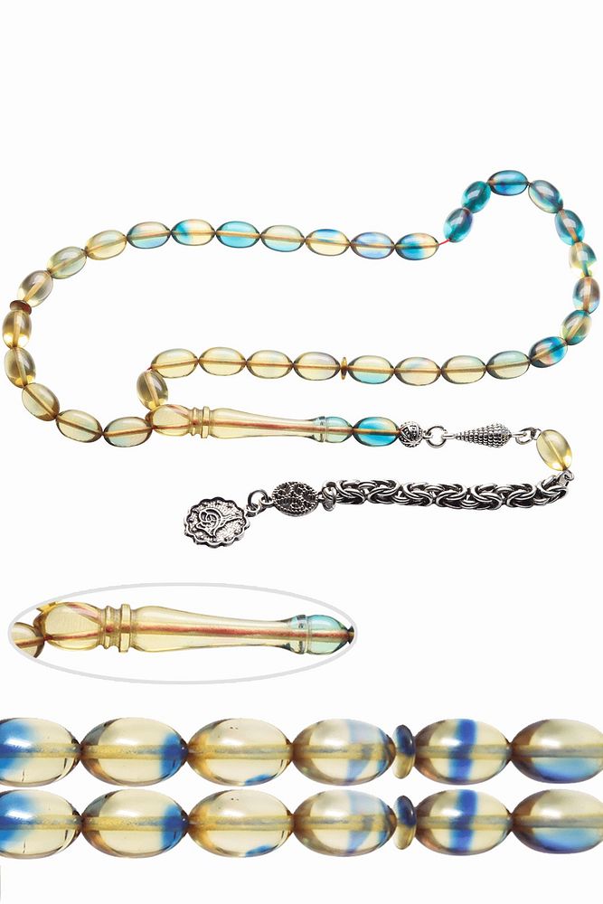 Sertifikalı Mavi Renkli Beyzi Kesim Ateş Kehribar Tesbih