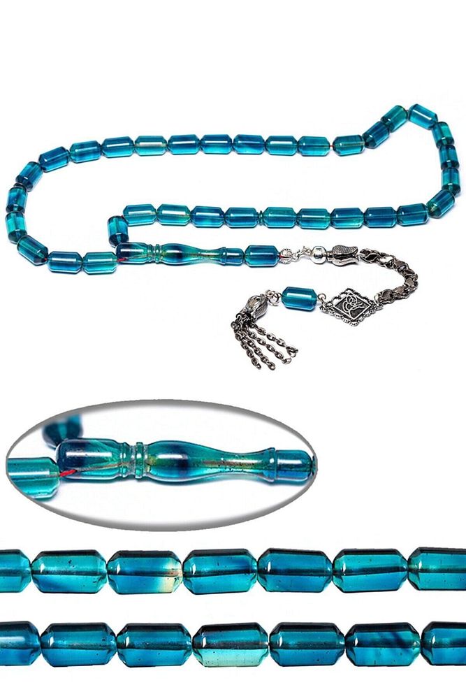 Ürün ya da Doğal Taş Açıklaması ; ı Kesici, Sinir Stres ve Bereket Taşı) ; Ateş kehribar tesbih modelleri, ''Tesbih Atölyesi'' Atölyelerinde ustalarımız tarafından kuru torna işciliği ile elde özen ile tane tane işlenmektedir. Ürünlerimiz el işciliği olduğu için sınırlı sayıda üretilmektedir. Tasarımlarımızda kullandığımız reçineler Dünya'nın en kaliteli reçineleridir. Kısa bir süre içerisinde renk alır ve koku verir. Ürünleriniz orijinallik ve garanti belgesi ile gönderilir. Tasarımlarımıza üç kat cila atılmıştır. Muhteşem bir çekime sahip koleksiyonluk ve günlük çekim için ideal ürünlerdir. ; Bu tasarımda; Mavi Renkli renk alan ve koku veren kaliteli ateş kehribar reçine kullanılmıştır. Her kehribar tanesi birbirinin aynısı olmadığı için küçükte olsa farklılıklar gösterebilir. ; Üretildiği Malzeme ; Ateş Kehribar ; Ana Renk ; Mavi Renk ; Ağırlık ; 20-30 gr ; Tane Şekli ; 8x12 mm ; Tane Ölçüsü ; Kapsül Kesim ; Toplam Uzunluk ; 20-30 cm ; İmame ve Püskül Maddesi ; Düşük Ayar Gümüş ;