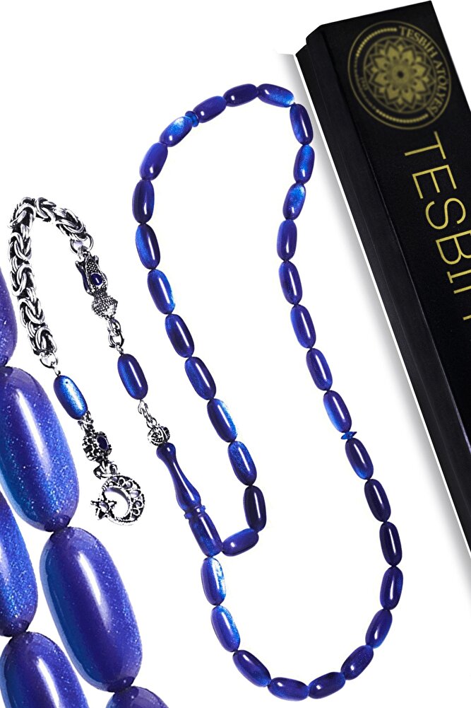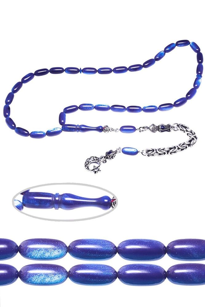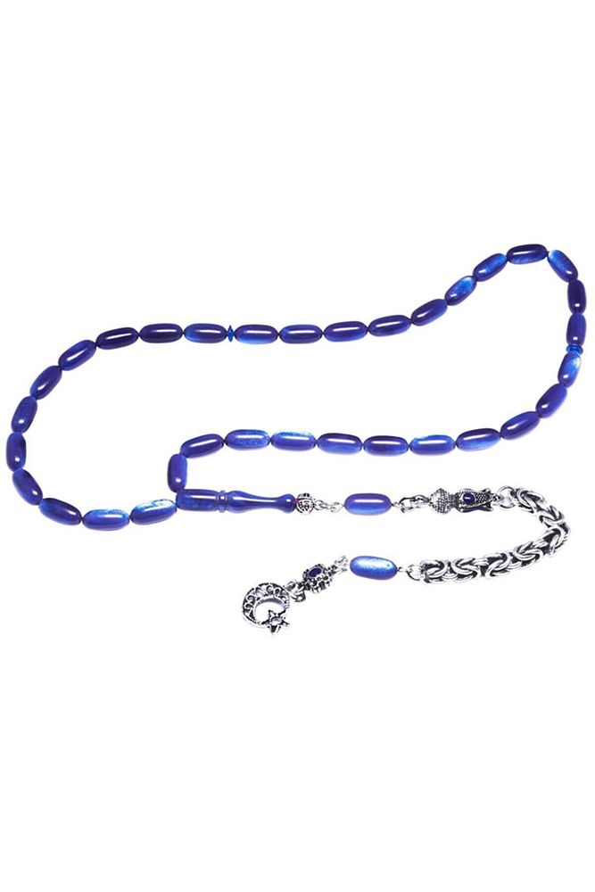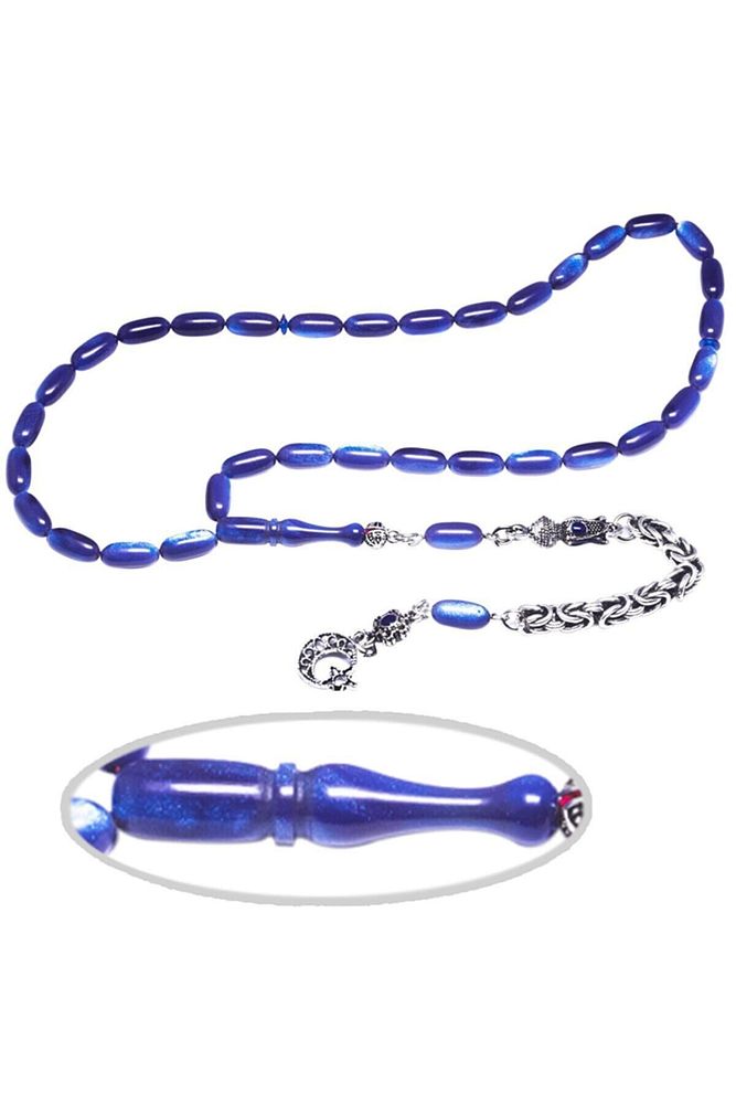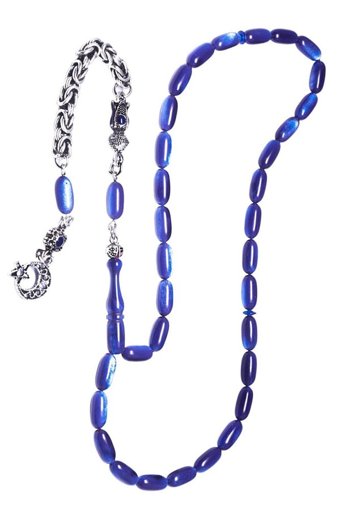Ürün ya da Doğal Taş Açıklaması; (Baş Ağrısı Sinir ve Stres); ; Tesbih Atölyesi, Sıkma kehribar tesbih, tasarımları özel olarak usta ellerde tasarlanır. Tasarımlarımız el yapımı olup sınırlı adette üretilmektedir. Tasarımlarda kullanılan püsküller düşük ayar gümüşten imal edilir. Tasarımlarda kullanılan kehribar taneleri hareli özel kalıplardan yapılır. Yapay reçine ile üretilmektedir. Ürünlerimiz renk almakta ve koku vermektedirler. ; Bu tasarımda; Mavi renkli üzeri gerçek sedefli özel bir ustalığa sahip renk alan kaliteli sıkma kehribar reçine kullanılmıştır. Her kehribar tanesi birbirinin aynısı olmadığı için küçükte olsa farklılıklar gösterebilir.; Üretildiği Malzeme; Sıkma Kehribar; Ana Renk; Mavi Renk; Ağırlık; 20-30 gr; Tane Şekli; 5.5x11 mm; Tane Ölçüsü; Aspirin Kapsül Kesim; Toplam Uzunluk; 20-30 cm; İmame ve Püskül Maddesi; Düşük Ayar Gümüş;