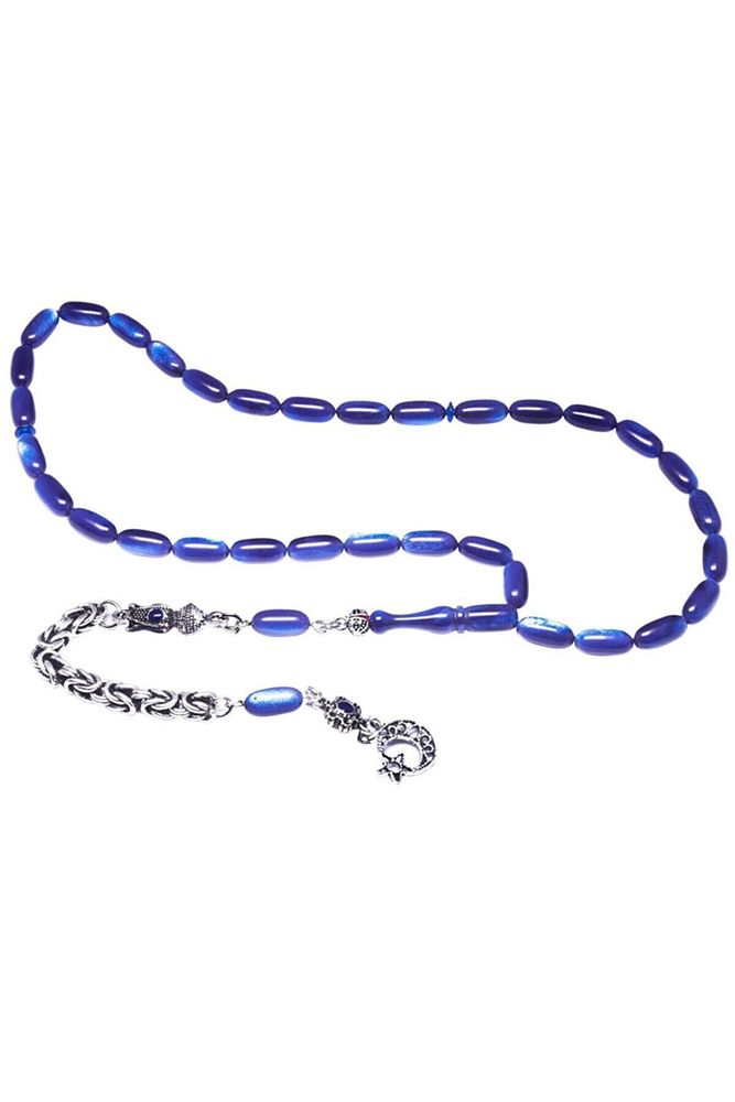 Sertifikalı Mavi Sedefli Kapsül Kesim Sıkma Kehribar Tesbih
