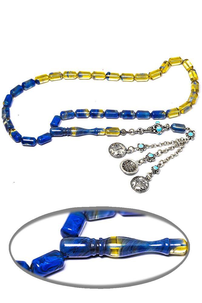 Ürün ya da Doğal Taş Açıklaması (Baş Ağrısı Sinir ve Stres) Tesbih Atölyesi, Sıkma kehribar tesbih, tasarımları özel olarak usta ellerde tasarlanır. Tasarımlarımız el yapımı olup sınırlı adette üretilmektedir. Tasarımlarda kullanılan püsküller düşük ayar gümüşten imal edilir. Tasarımlarda kullanılan kehribar taneleri hareli özel kalıplardan yapılır. Yapay reçine ile üretilmektedir. Ürünlerimiz renk almakta ve koku vermektedirler. Bu tasarımda; Mavi şeffaf renk hüzmesi özel 1.kalite sıkma kehribar reçine kullanılmıştır. Her kehribar tanesi birbirinin aynısı olmadığı için küçükte olsa farklılıklar gösterebilir. Üretildiği Malzeme; Sıkma Kehribar; Ana Renk; Mavi ve Şeffaf Renk; Ağırlık; 20-30 gr; Tane Şekli; 8x12 mm; Tane Ölçüsü; Kapsül Kesim; Toplam Uzunluk; 20-30 cm; İmame ve Püskül Maddesi; Düşük Ayar Gümüş;