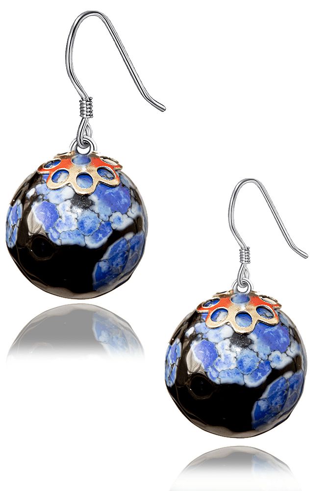 Sertifikalı Mavi Siyah Tibet Akik Taşı Doğal Taş Küpe