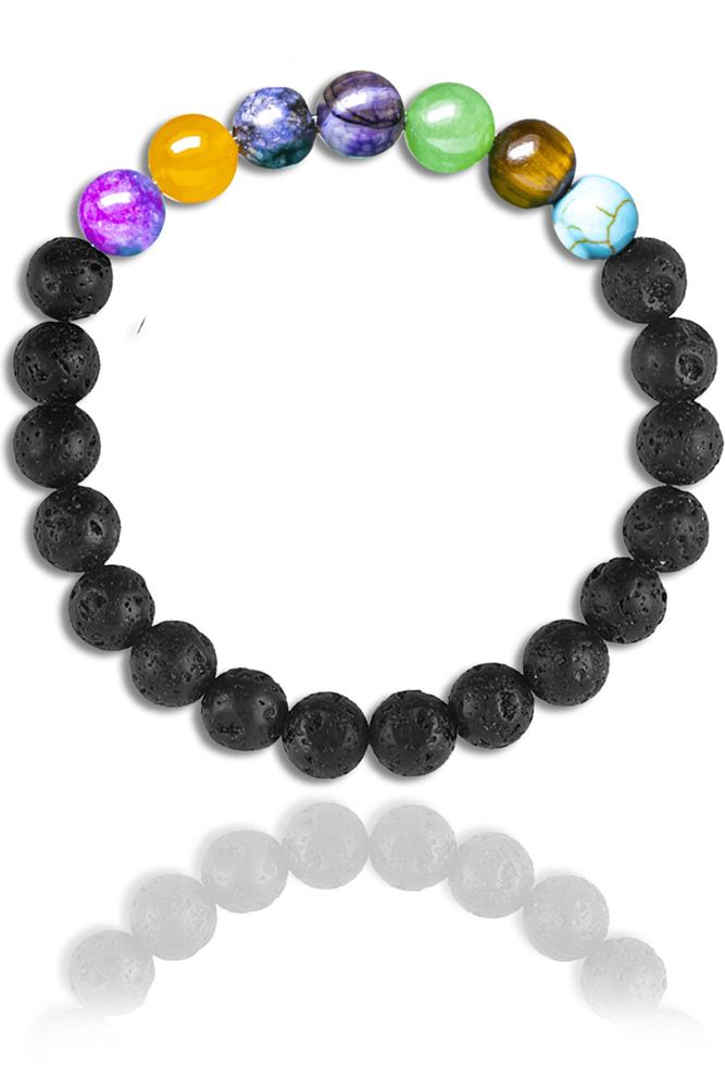(7 Çakra Meditasyon Reiki Doğal Taş Bileklik - Doğal Lav Opal Akik Lapis Ametist Aventurin Kaplan Gözü)