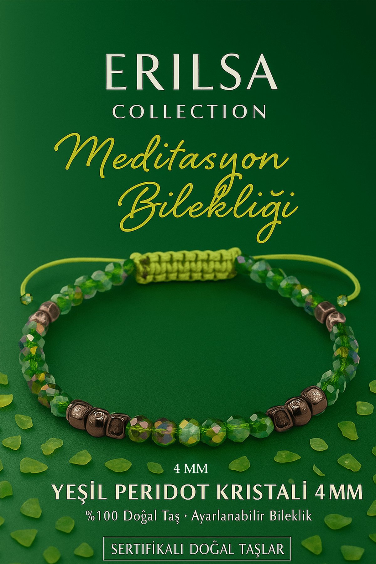 Bu bileklik meditasyon, zihinsel dinginlik ve enerji uyumu amacıyla hazırlanmış ince model bir doğal taş bilekliğidir. Kullanılan tüm taşlar 4 mm ölçüsündedir ve bileklik hafif yapısıyla gün boyu rahat kullanım sağlar. Yeşil Peridot kristali ruhsal denge, ferahlık ve enerji akışının düzenlenmesiyle ilişkilendirilen bir taştır. Terahertz ara aparatları enerji titreşimini destekleyen tamamlayıcı bir etki sunar.