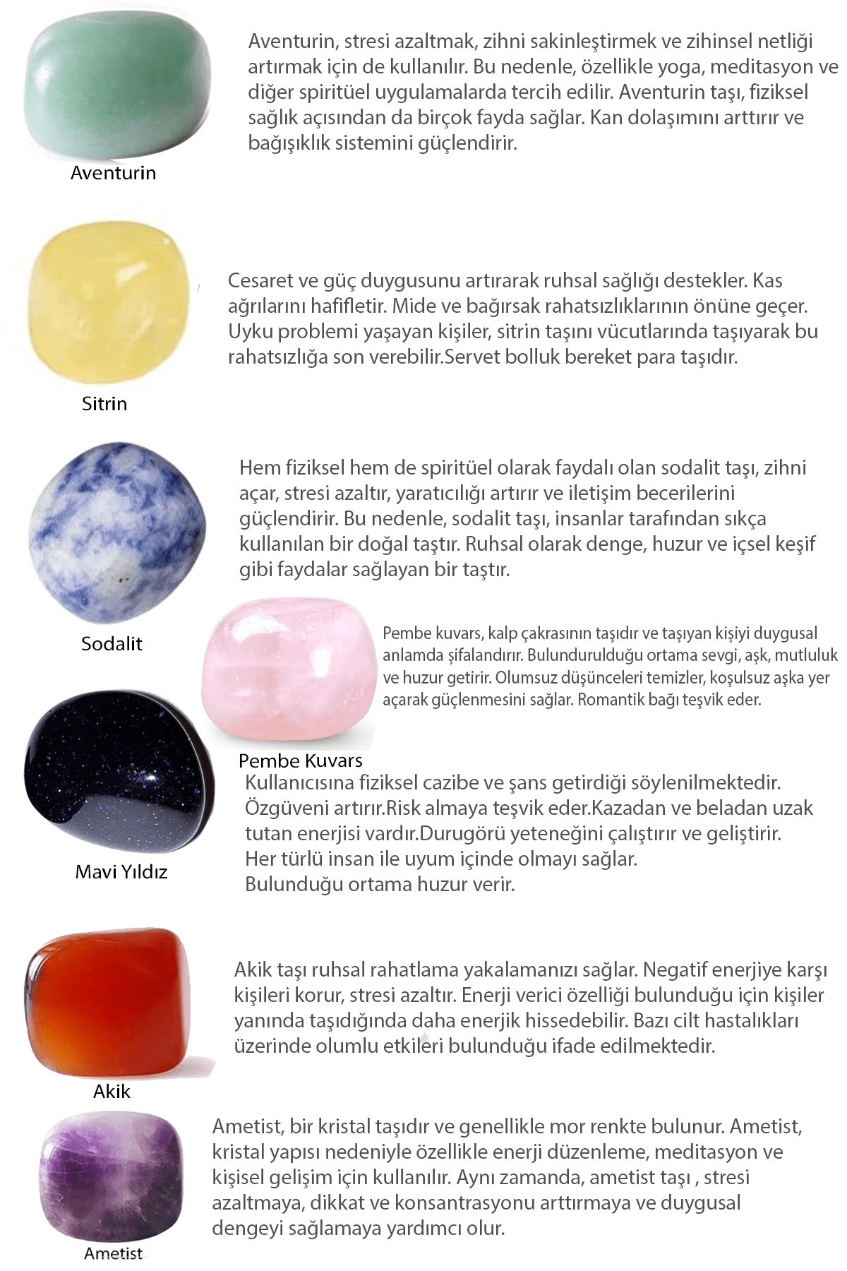 İçerisindeki Ham Taşlar :Ametist, Sitrin, Pembe Kuvars, Aventurin, Sodalit, Yıldız Taşı, Akik