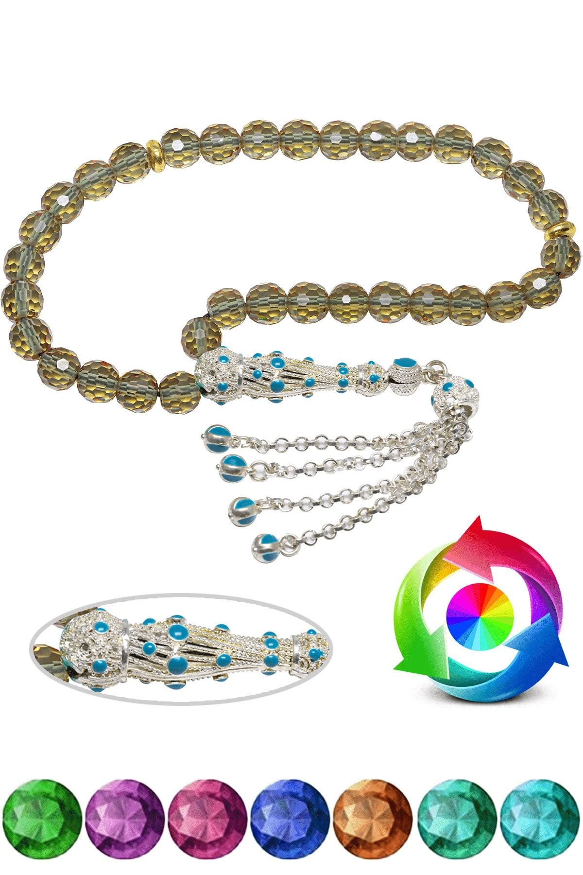 Sertifikalı Ortam Işığına Göre 7 Renk Değiştiren Doğal Diaspor Sultanit Sultan Zultanit Taşı Tesbih Beyaz Turkuaz Mineli Telkari Püsküllü