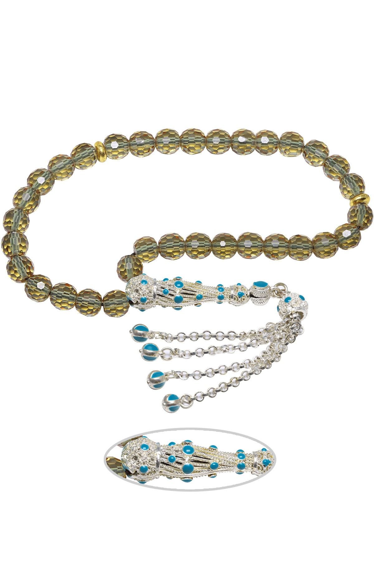 Ürün ya da Doğal Taş Açıklaması (Ortam Işığına Göre 7 Renk Değiştiren Türkiye'nin En Değerli Taşı) Zultanit tesbih modelleri, ''Tesbih Atölyesi'' Atölyelerinde ustalarımız tarafından kuru torna işciliği ile elde özen ile tane tane işlenmektedir. Ürünlerimiz el işciliği olduğu için sınırlı sayıda üretilmektedir. Tasarımlarımızda kullandığımız taşlar Dünya'nın en kaliteli doğal taşlarını ithal etmekteyiz. Tasarımlarımızda kullandığımız doğal taşların hiç biri birbirinin aynısı olmadığı için küçükte olsa farklılık gösterebilir. Doğal taşlar vücudunuza temas ettiği anda negatif enerjinizi alır ve pozitif enerjiler verir. Bu tasarımda; Muğla Milas'tan çıkan Türkiye'nin en değerli ''Ortam ışığına göre 7 renk değiştiren'' zultanit taşı ve altın kaplama siyah mineli telkari imame ve püskül seti kullanılmıştır. Çift kaplama rodaj sistemi uygulandığı için renk atmaz ve kararmaz bir yapıya sahiptir. Üretildiği Taş; Zultanit (Sultanite); Ana Renk; Doğal Renk; Ağırlık; 20 gr; Tane Şekli; 7×7 mm; Tane Ölçüsü; Küre Kesim; Toplam Uzunluk; 20-30 cm; İmame ve Püskül Maddesi; Düşük Ayar Gümüş;