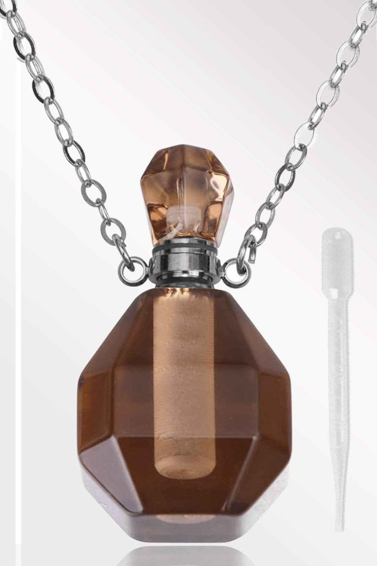 Dumanlı Kuvars Doğal Taş Parfüm Şişe Tasarımlı Kolye |