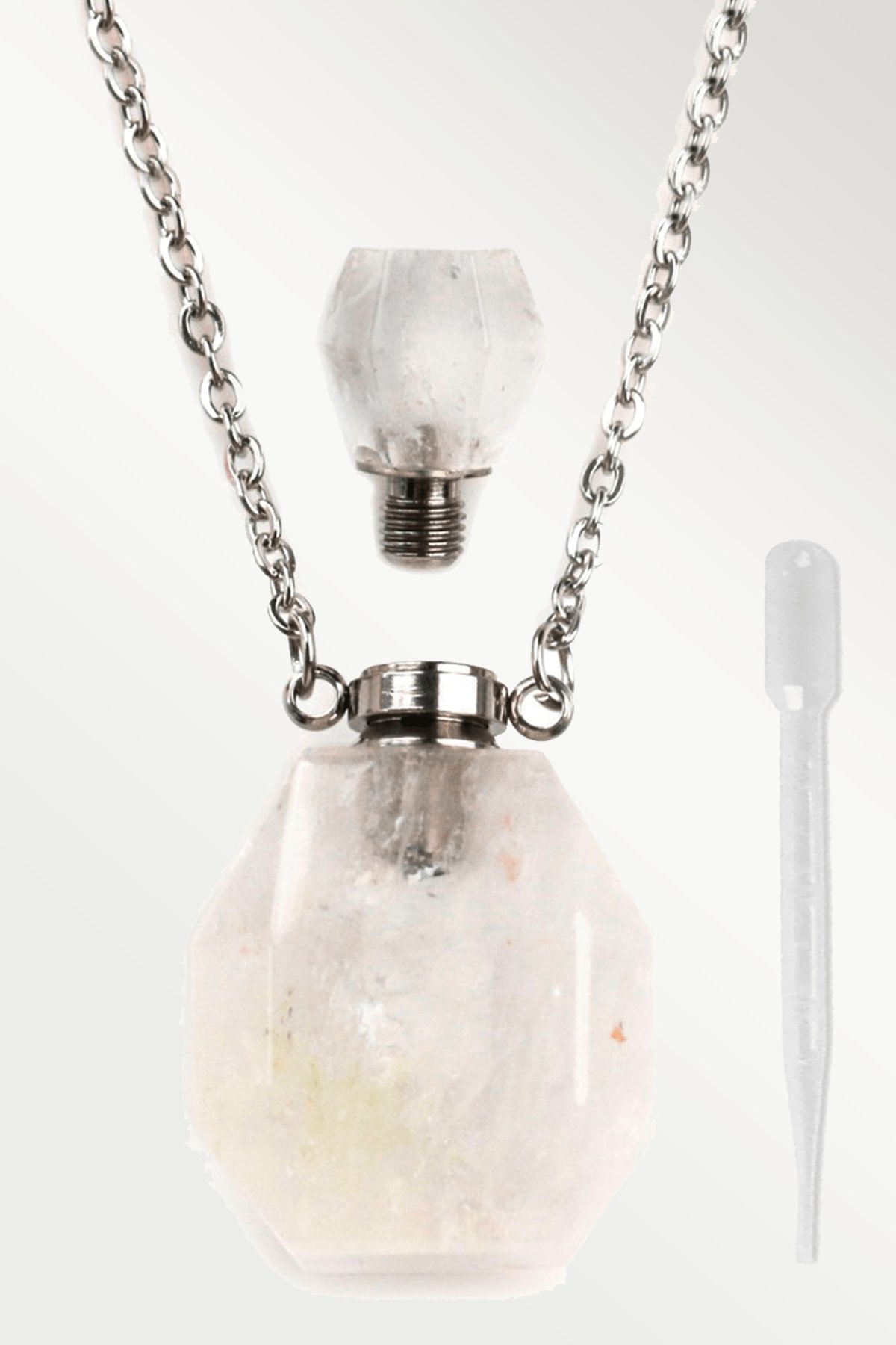 Sertifikalı Parfüm Şişe Tasarımlı Pembe Kuvars Taşı Kolye - Gümüş Aparat