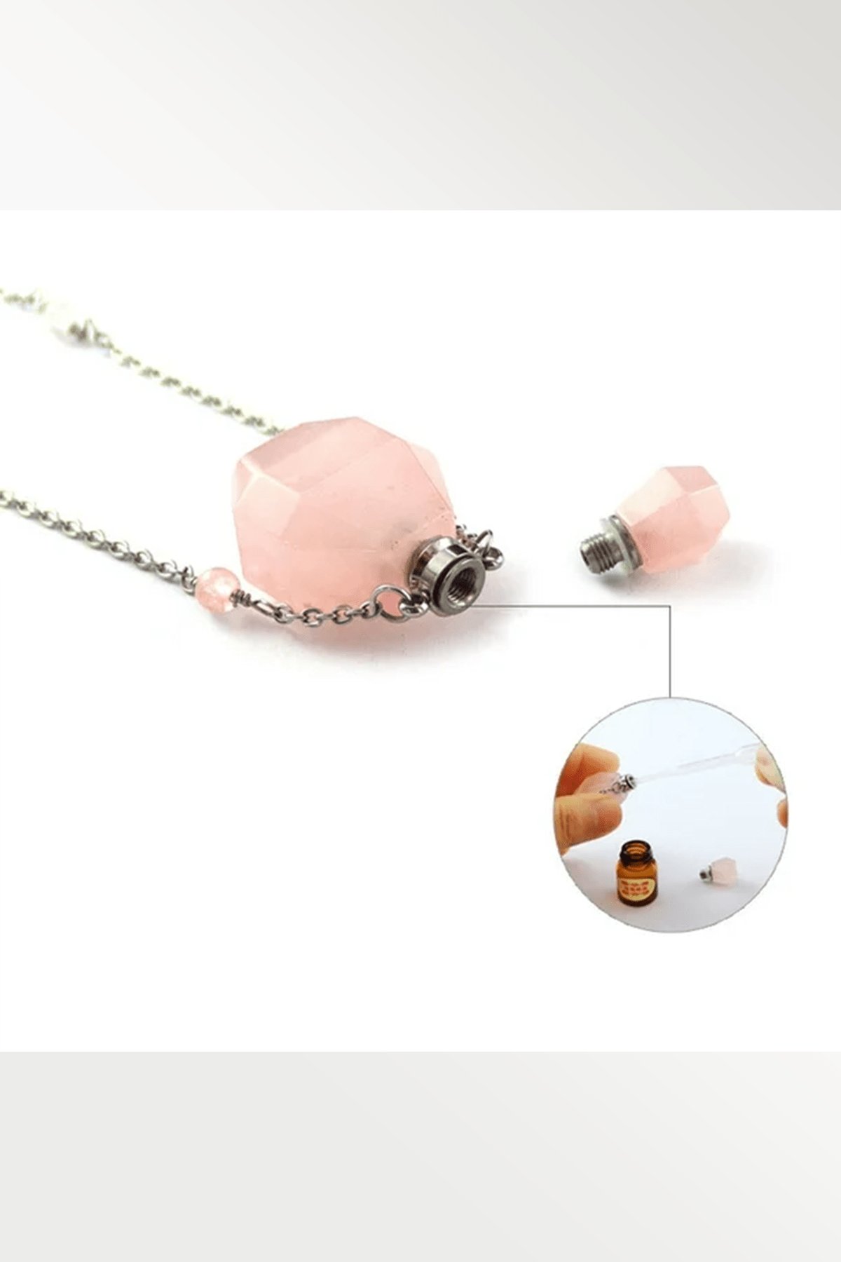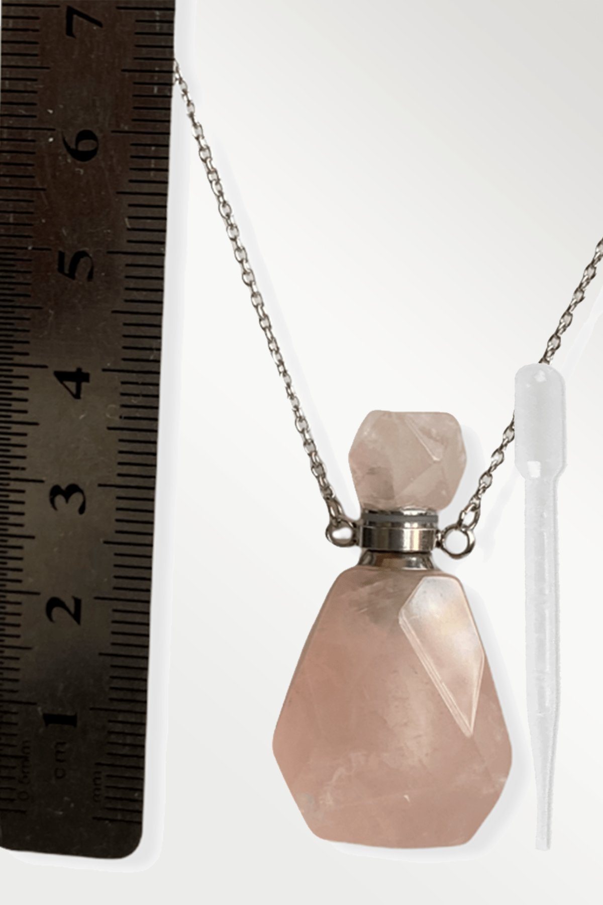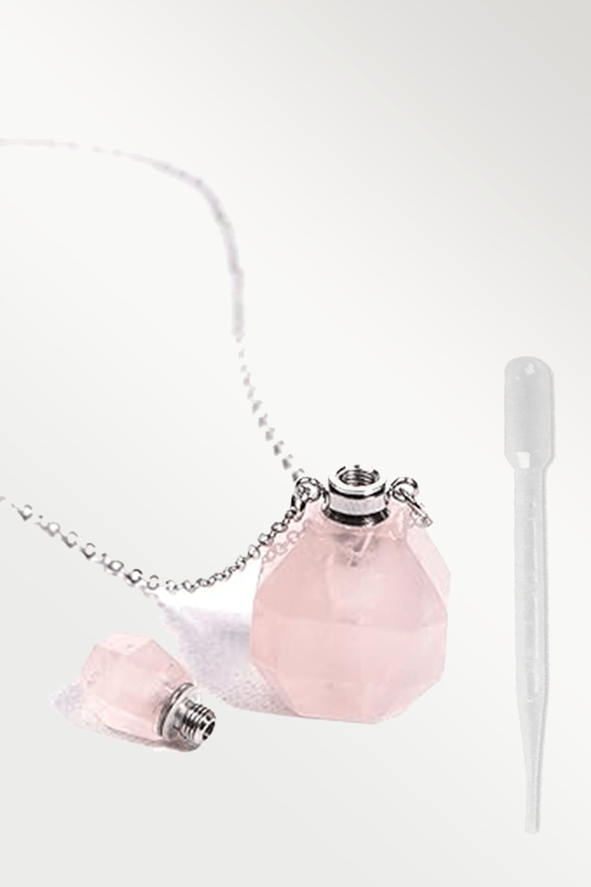 Pembe Kuvars Doğal Taş Parfüm Şişe Tasarımlı Kolye |