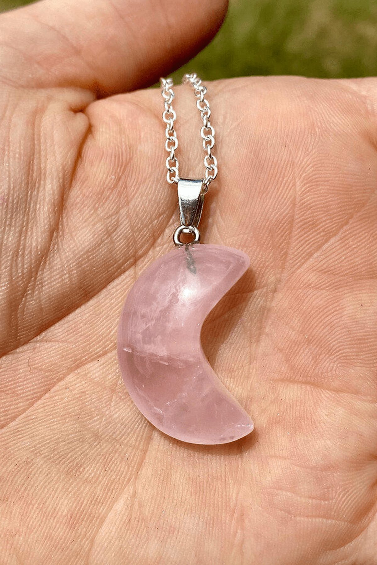 Sertifikalı Pembe Kuvars Doğal Taş Ay Model Kolye