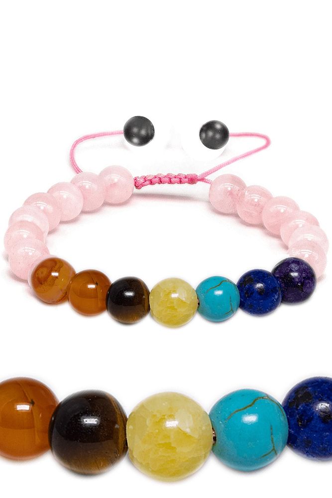 Sertifikalı Pembe Kuvars Taşı 7 Çakra Bileklik - Akik Kaplan Gözü Sitrin Firuze Lapis Ametist Taşı