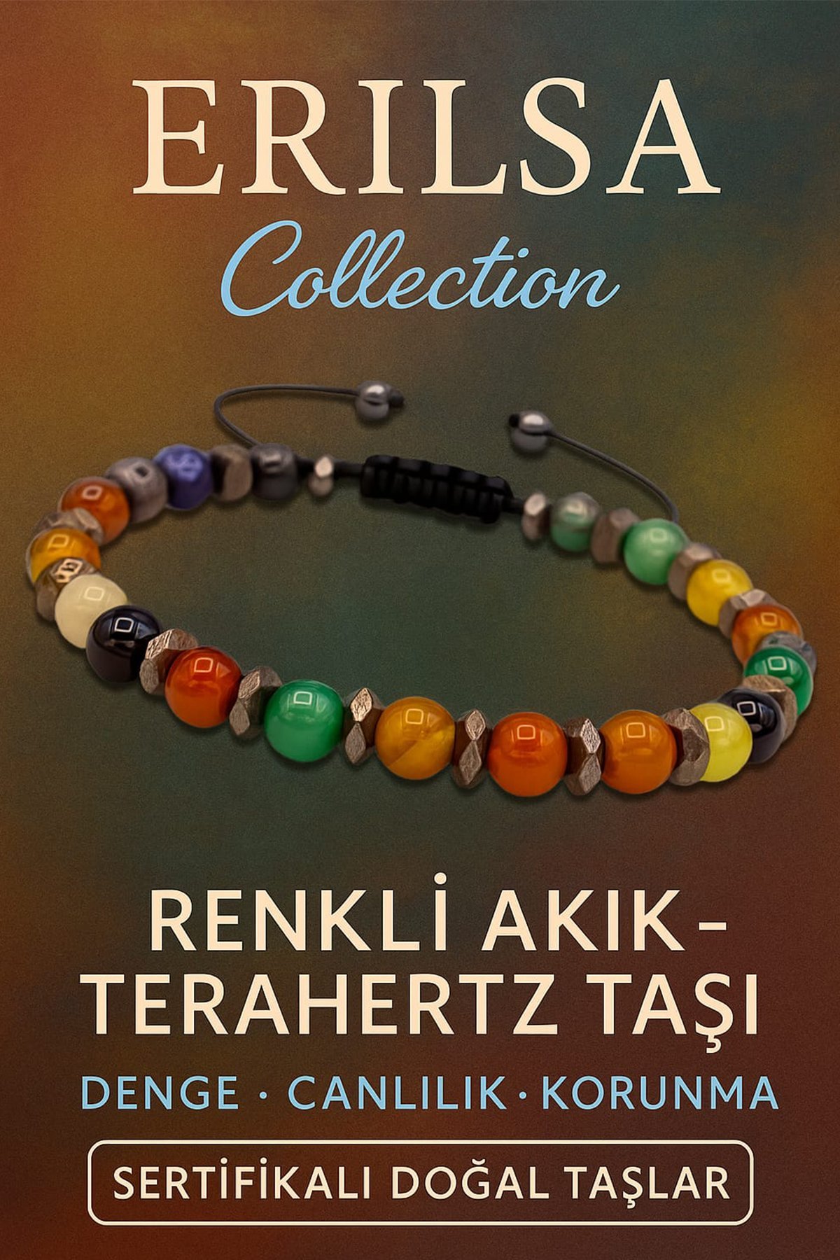 Her bir rengi farklı bir enerjiyi temsil eden doğal renkli akik taşları, modern çağın teknolojik şifa taşı Terahertz ile birleşerek bu eşsiz bileklikte bir araya geliyor. Hem ruhsal hem fiziksel denge arayanlar için benzersiz bir enerji kaynağı sunar.