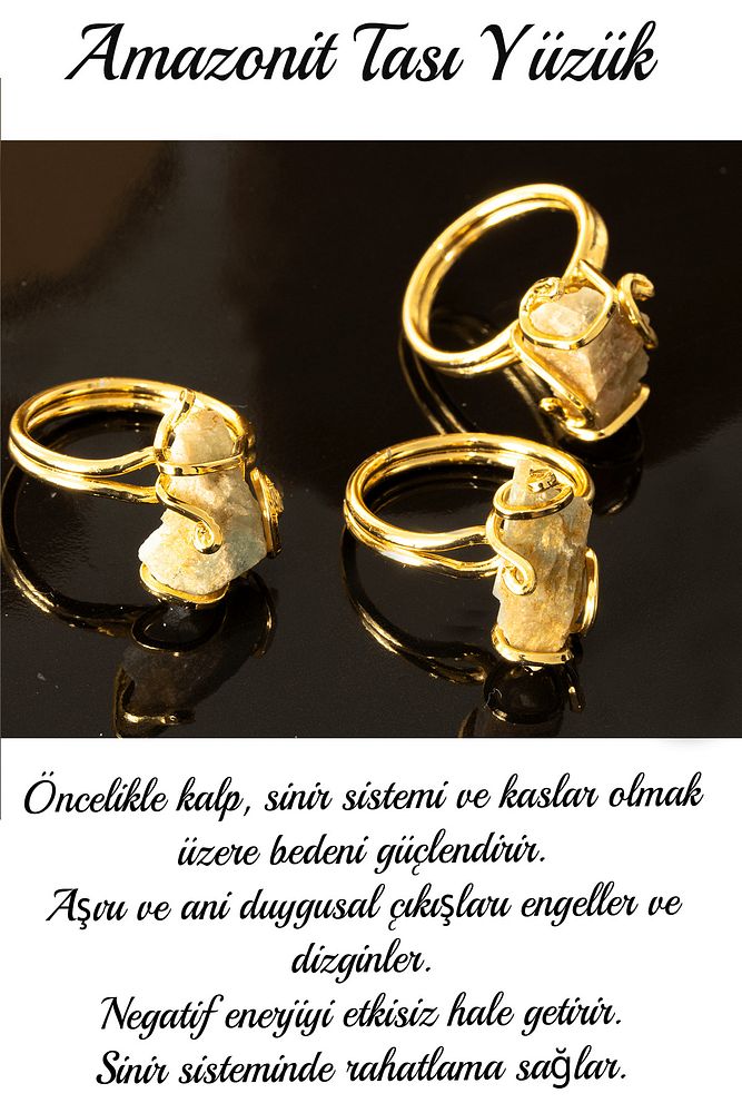 Sertifikalı Rokoko Model Ham Amazonit Taşı Yüzük - Ayarlamalı