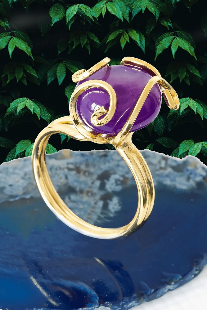Sertifikalı Rokoko Model Mor Akik Taşı Yüzük - Ayarlamalı