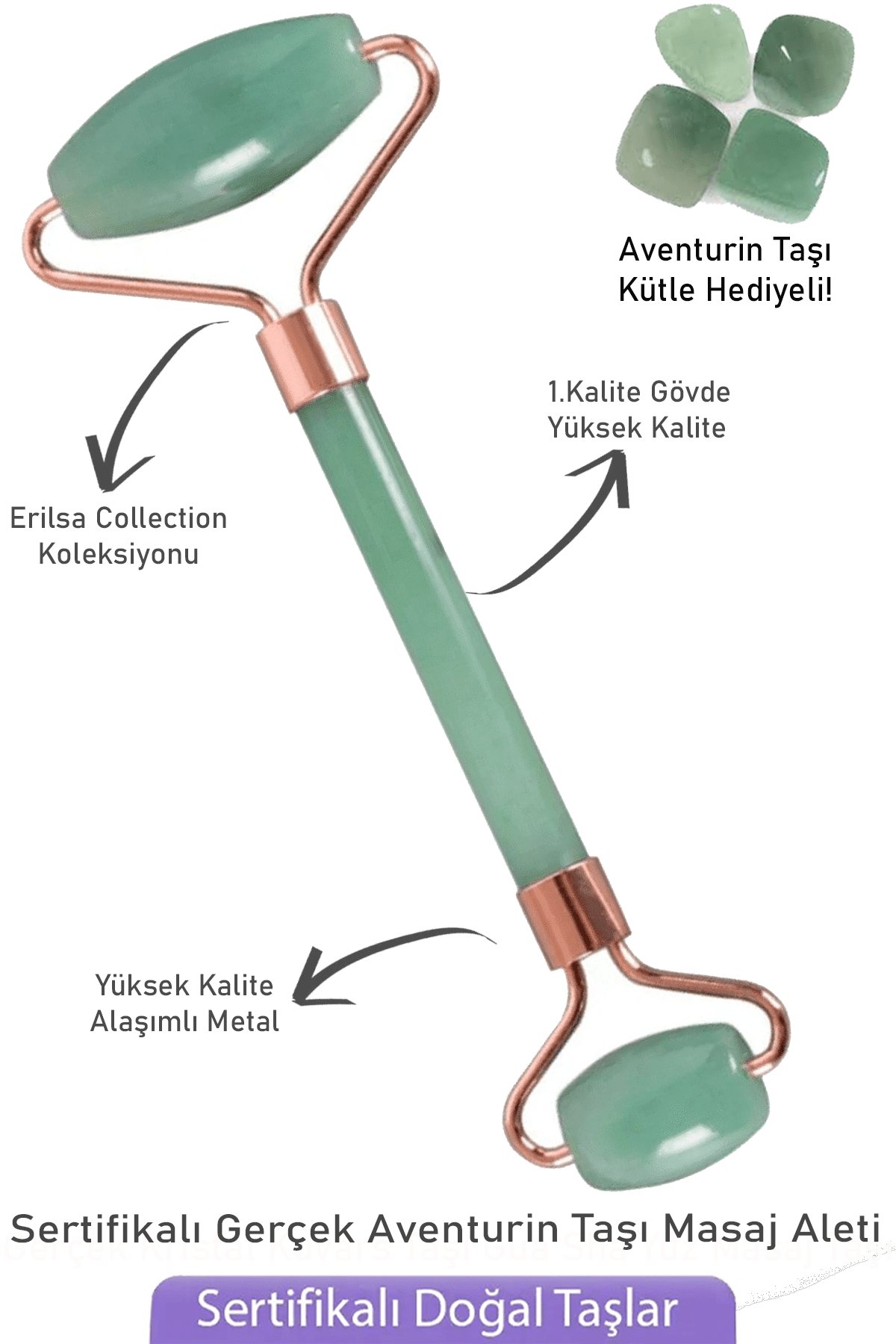 Aventurin taşından masaj aleti roller. Perakende alımlarda özel kutusunda gönderilecektir. Ölçüler : Uzunluğu 15 CM. Büyük taş 42X20 MM. Küçük Taş : 21X20 MM Sap Kalınlığı : 13 MM
