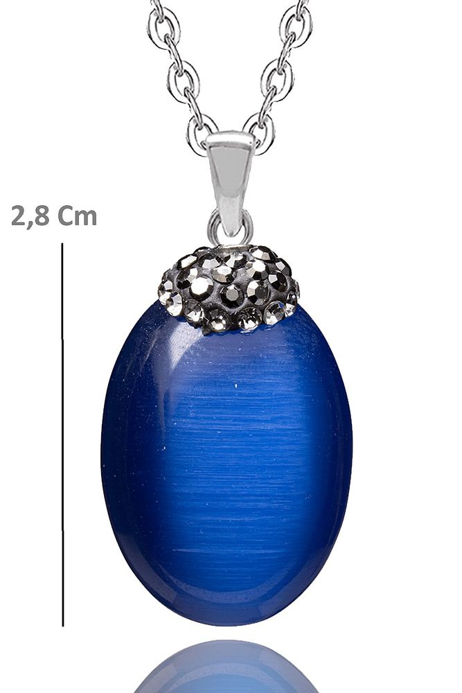 Sertifikalı Saks Mavisi Akik Doğal Taş Kolye