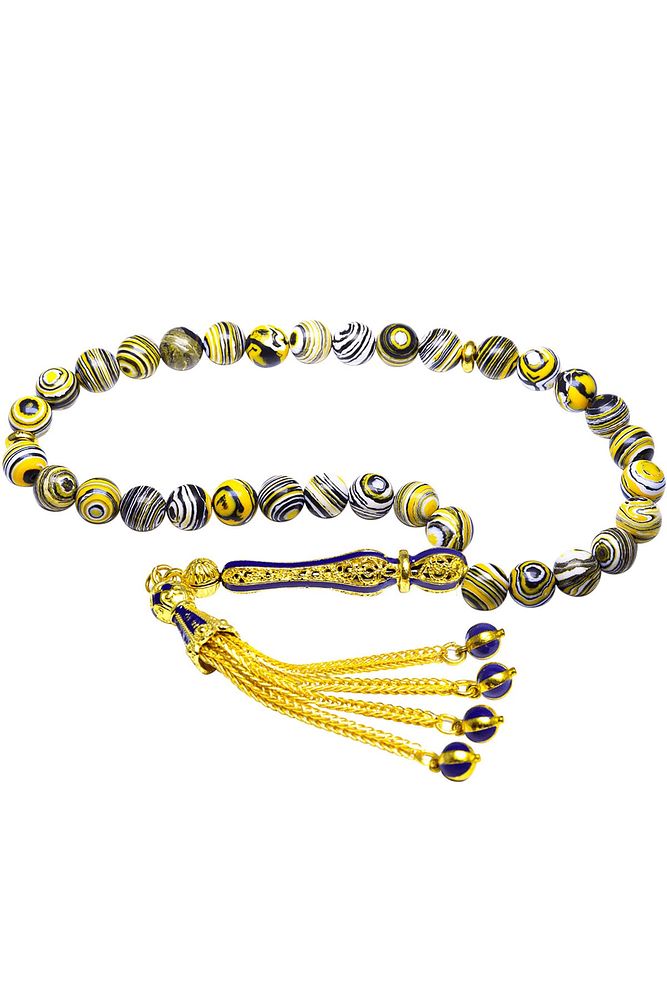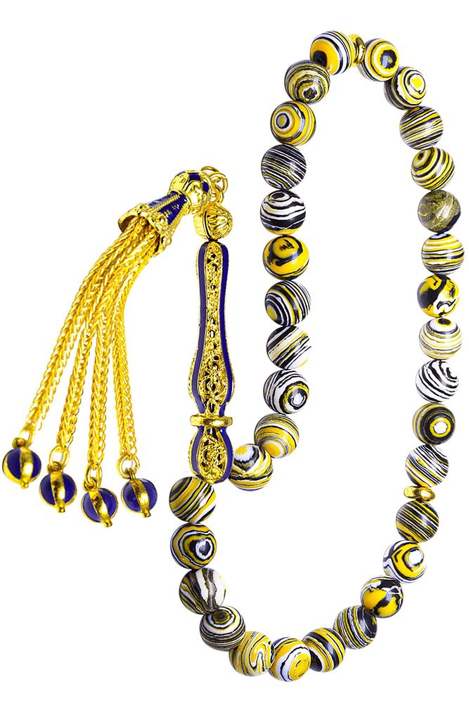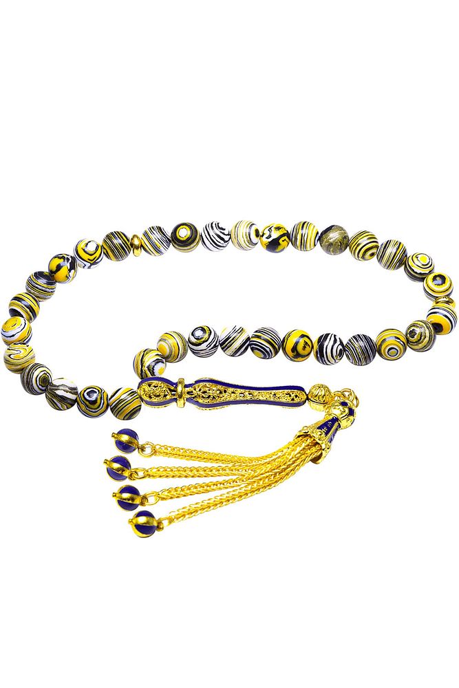 Sertifikalı Sarı Mavi Renk Telkari Püsküllü Fransız Galalit Tesbih
