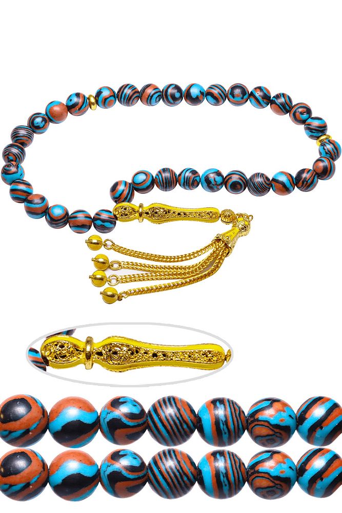 Ürün ya da Doğal Taş Açıklaması (Pozitif Enerji, Para ve Sağlık Taşı) Fransız galalit tesbih modelleri, ''Tesbih Atölyesi'' Atölyelerinde ustalarımız tarafından kuru torna işciliği ile elde özen ile tane tane işlenmektedir. Ürünlerimiz el işciliği olduğu için sınırlı sayıda üretilmektedir. Tasarımlarımızda kullandığımız taşlar Dünya'nın en kaliteli taşlarını ithal etmekteyiz. Bu tasarımda; ''İnek sütü ile karıştırılan özel kahverengi, mavi, siyah renkli fransız galalit taşından imal edilmiştir. İmame ve Püskül yapımında; 24 ayar altın kaplama sarı mineli telkari imame ve püskül seti kulanılmıştır. 'Çift kaplama rodaj sistemi uygulandığı için renk atmaz ve kararmaz bir yapıya sahiptir. Üretildiği Taş; Galalit Taşı; Ana Renk; Doğal Renk; Ağırlık; 20-30 gr; Tane Şekli; 8x8 mm; Tane Ölçüsü; Küre Kesim; Toplam Uzunluk; 20-30 cm; İmame ve Püskül Maddesi; Düşük Ayar Gümüş;