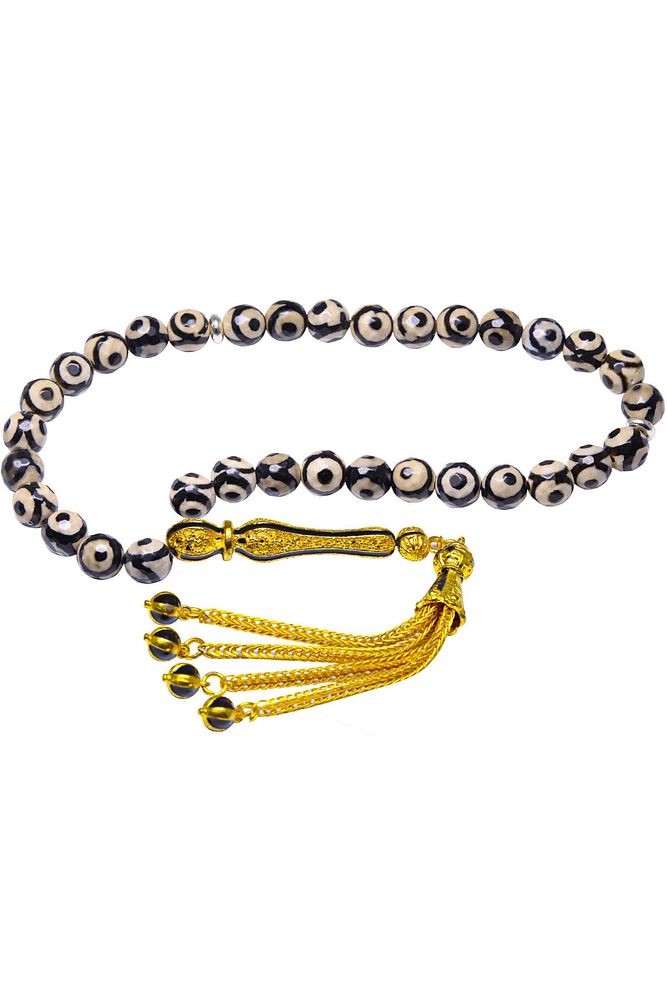 Sertifikalı Sarı Mineli Telkari Püsküllü Benekli Doğal Akik Taşı Tesbih