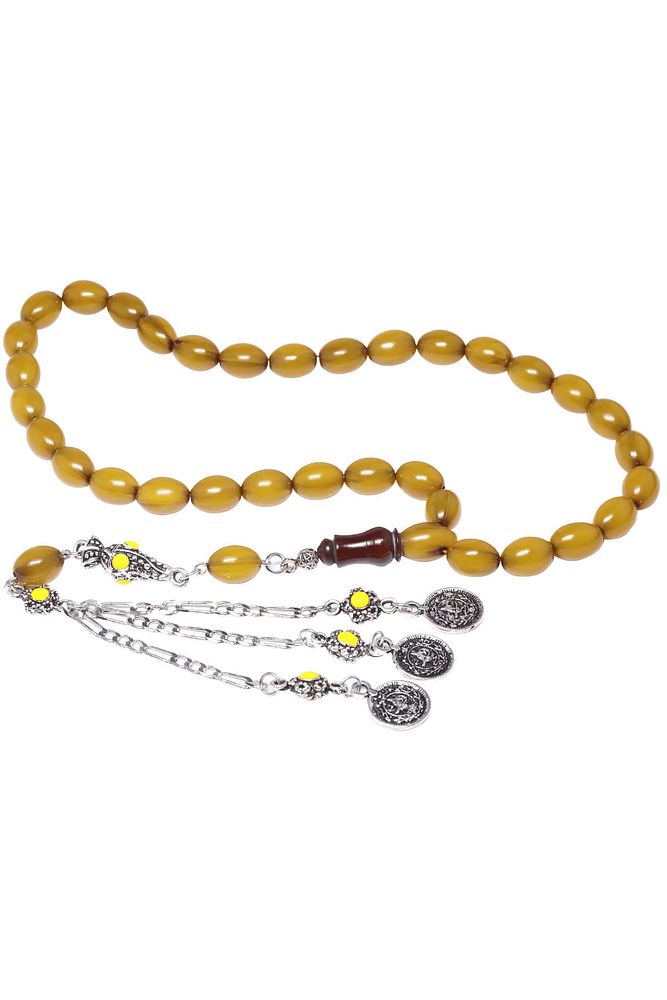 Sertifikalı Sarı Renk Dik Damar Halep Püskül Osmanlı Benzetmesi Çubuk Sıkma Kehribar Tesbih