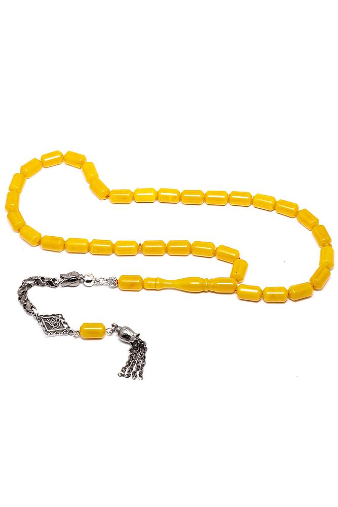 Sertifikalı Sarı Renk Kapsül Kesim Sıkma Kehribar Tesbih