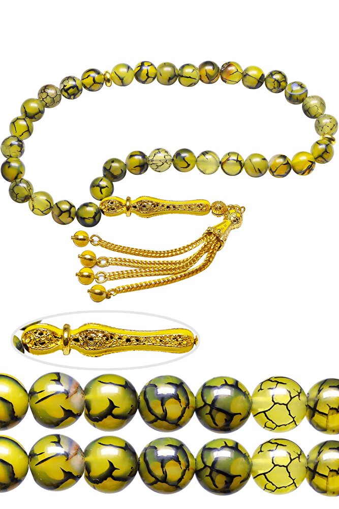 Sertifikalı Sarı Renkli Doğal Ejderha Akik Taşı Tesbih