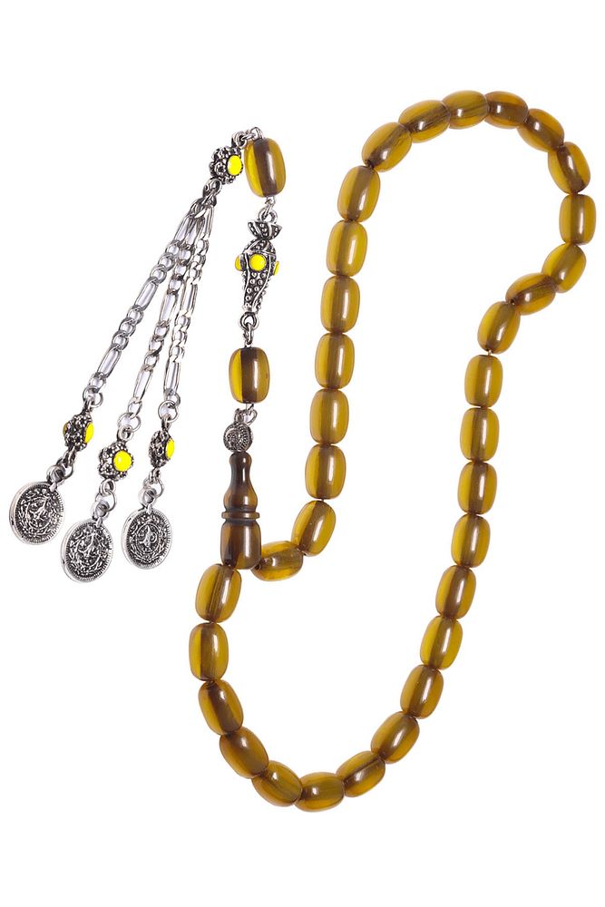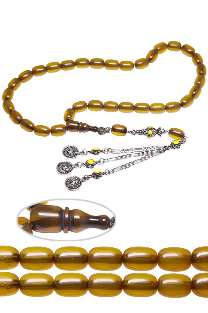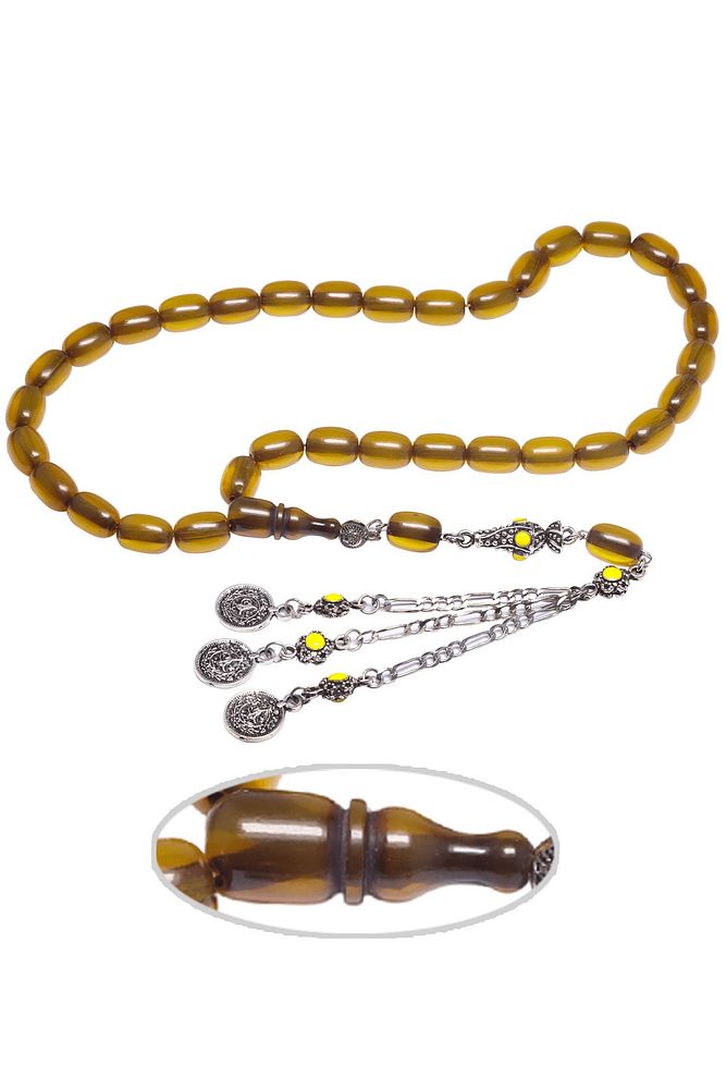Sertifikalı Sarı Renkli Kapsül Osmanlı Benzetmesi Çubuk Sıkma Kehribar Tesbih